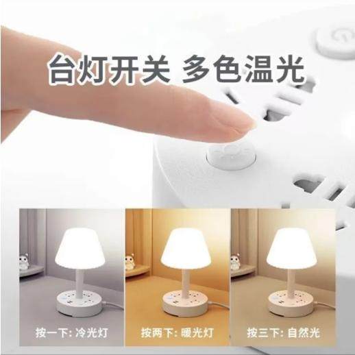 台灯插座卧室床头柜学生宿舍护眼创意夜灯接线板三插孔不带USB