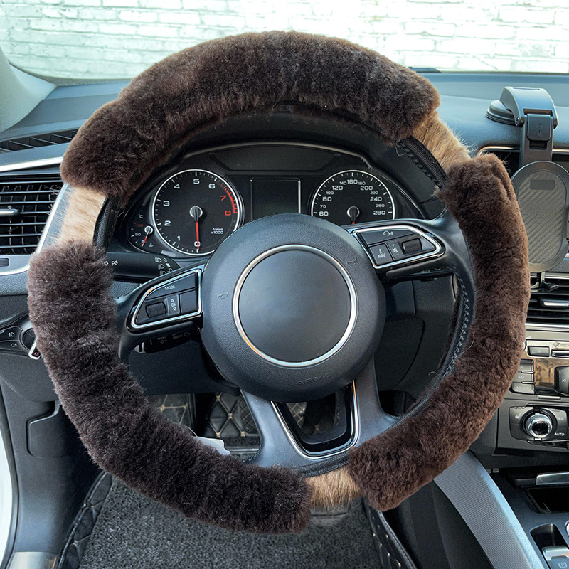 AUSKIN冬季羊毛牛皮通用方向盘套