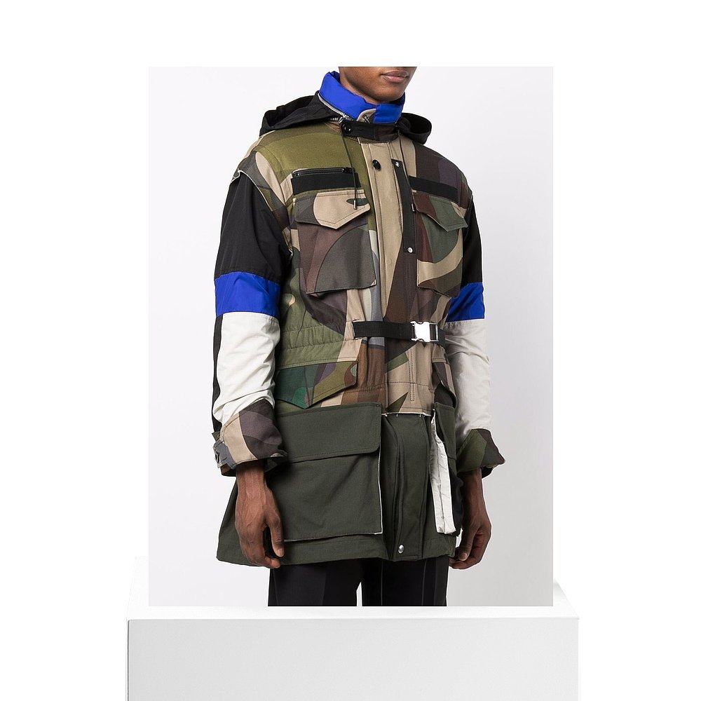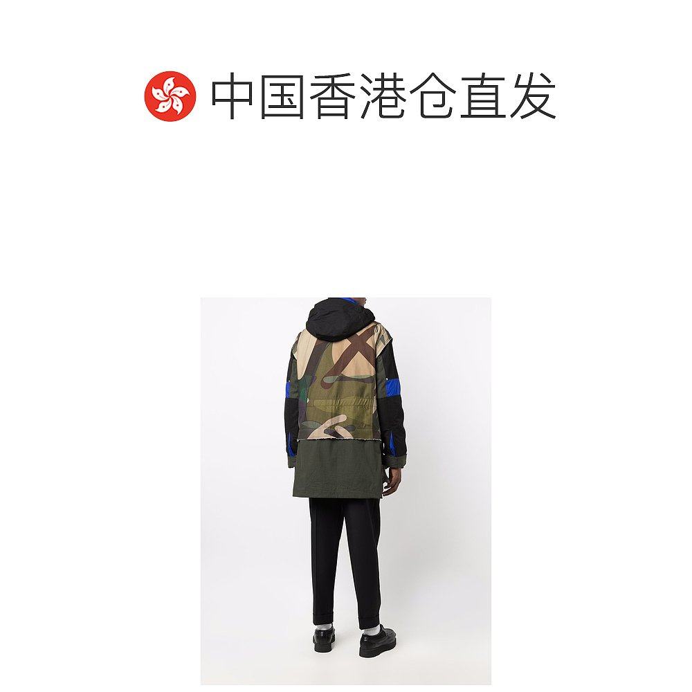 香港直邮Sacai 抽象印花拼色派克大衣外套 2102561M