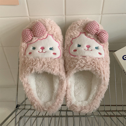 可爱少女心蝴蝶结棉拖鞋居家室内防滑保暖学生宿舍半包跟毛绒鞋女