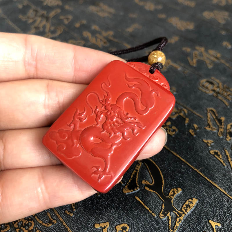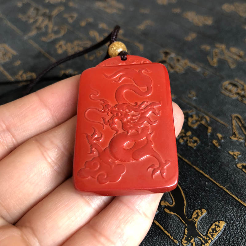 台湾原色朱砂生肖龙玉牌吊坠玄龙望尊玉佩项链送证书