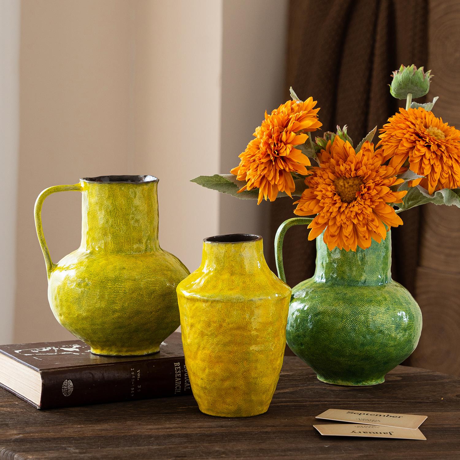 花瓶陶瓷复古田园创意摆件客厅插花水培鲜花法式中古餐桌干花装饰