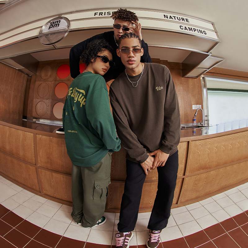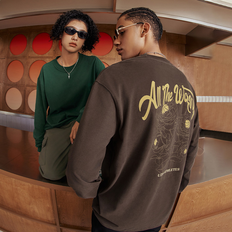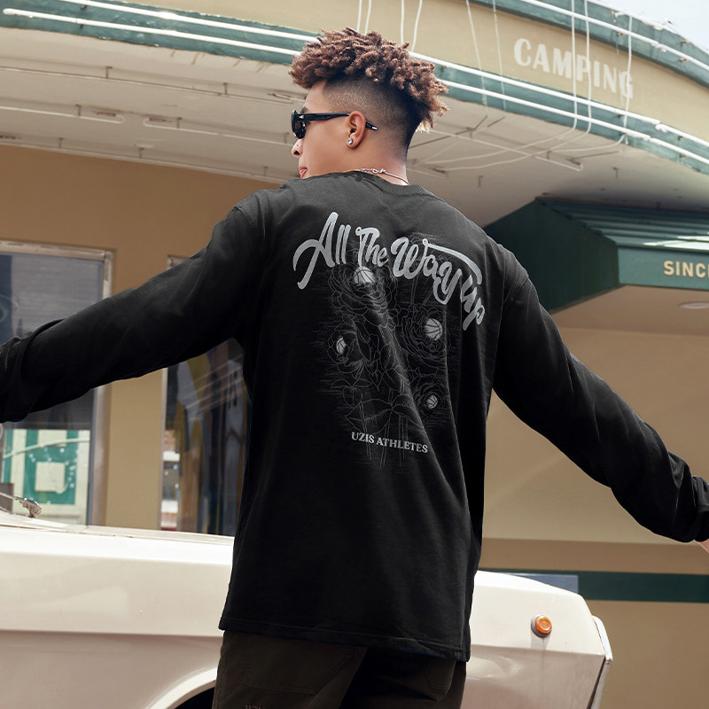 有志者UZIS美式长袖T恤男复古投篮服宽松圆领篮球运动打底衫[怒放