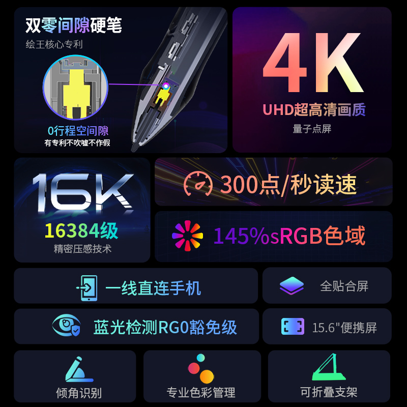 绘王Kamvas Pro 16 Plus数位屏4K手绘屏电脑绘画屏液晶绘图数位板