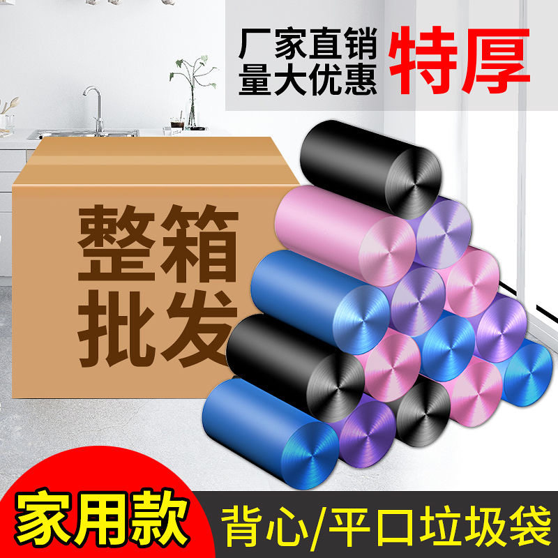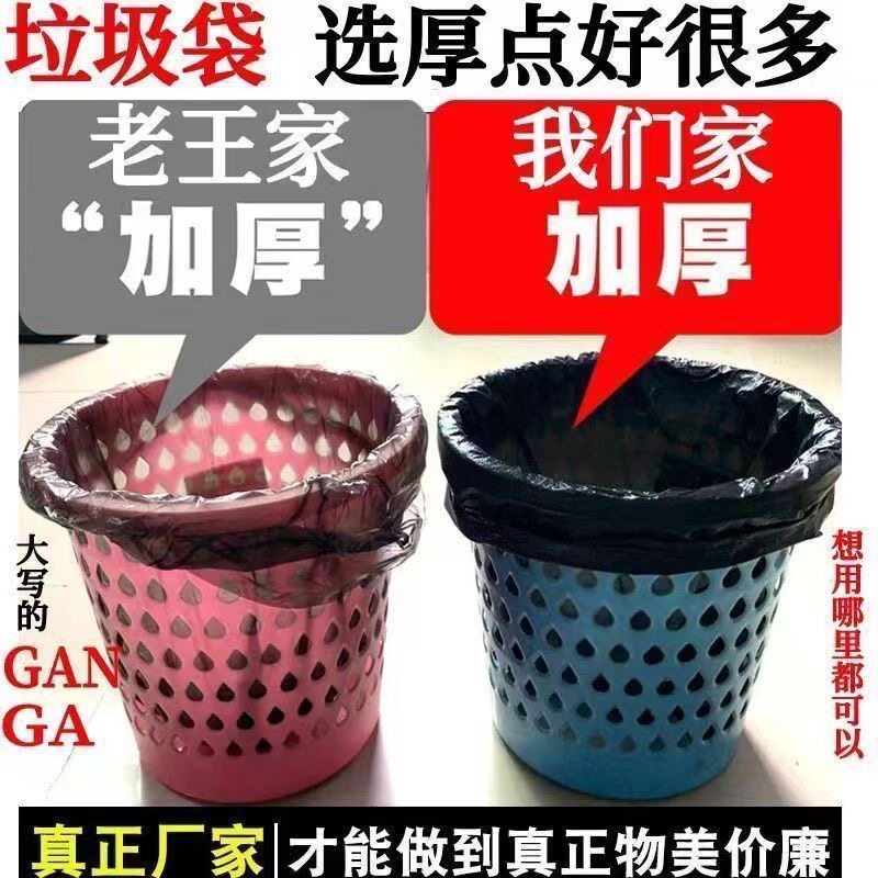 垃圾袋家用手提式平口袋子加厚特厚大号抽绳式厨房塑料袋大号批发