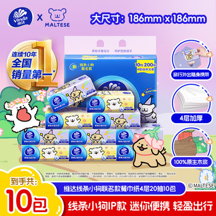 维达线条小狗联名抽纸便携小学生餐巾纸纸巾20抽大包手帕纸面巾纸