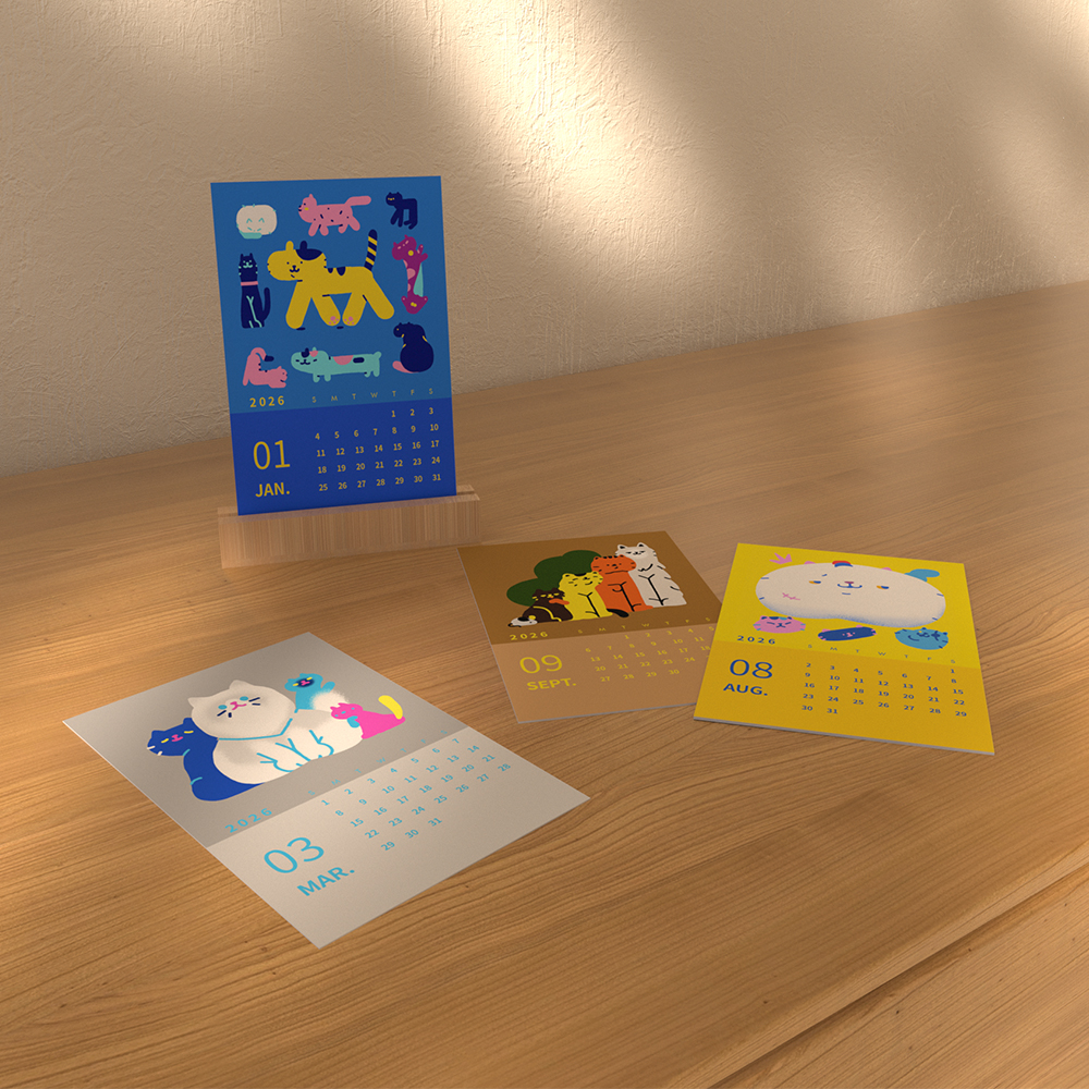 2026原创小众新品日历ins风格可爱猫猫日系新年卡片日期墙贴台历