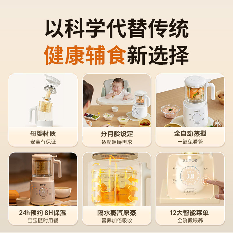 苏泊尔分月龄辅食机蒸煮搅一体婴儿宝宝料理机专用多功能打泥米糊