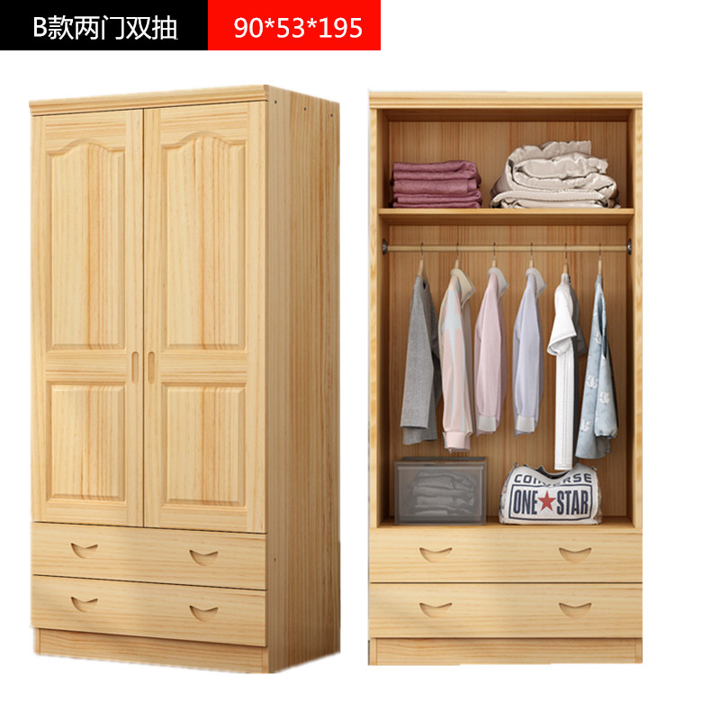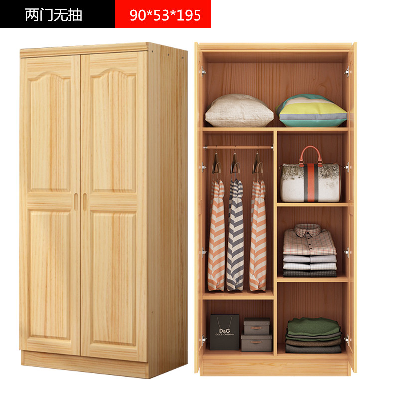2门松木衣柜实木衣柜现代简约经济型组装原木卧室整体大衣橱两门