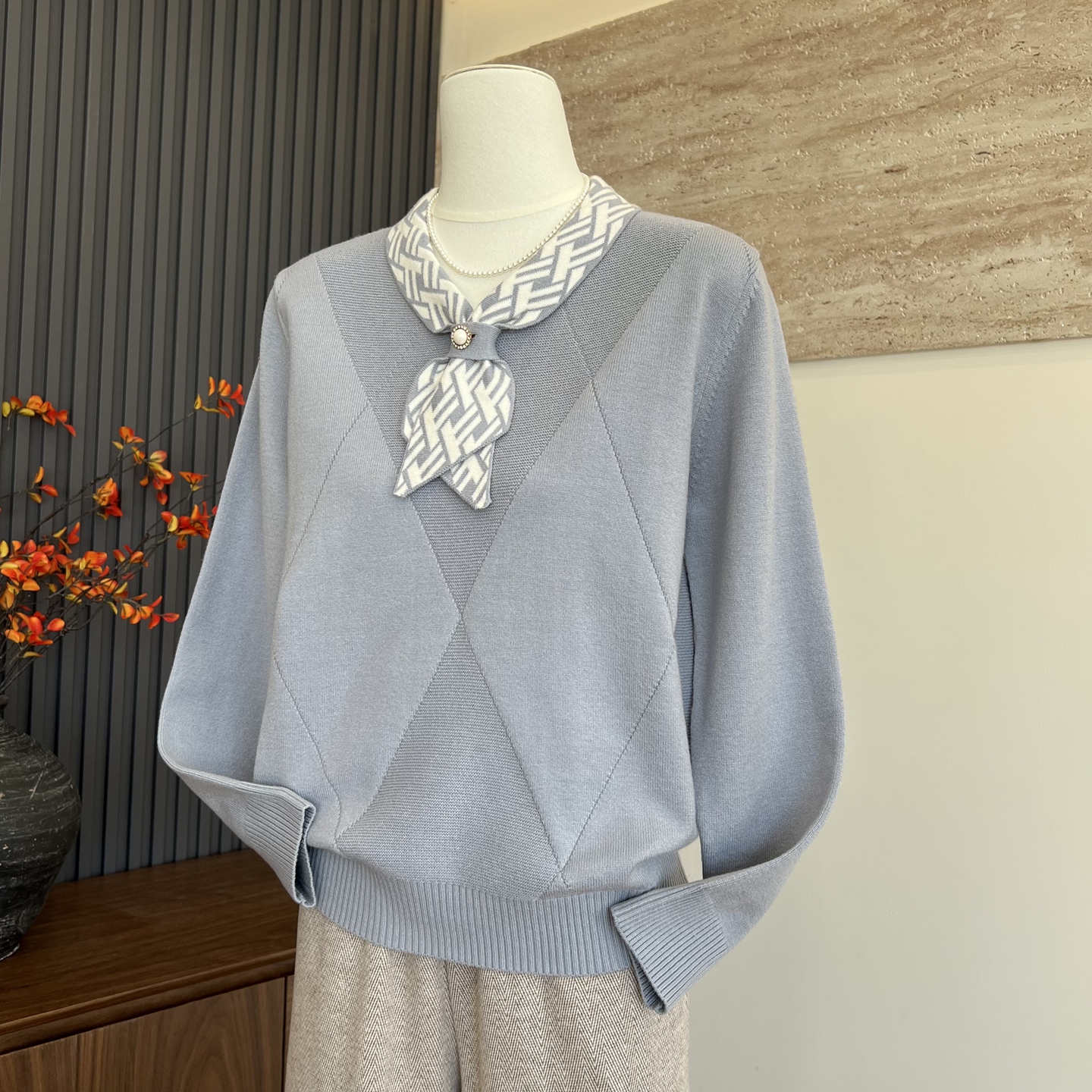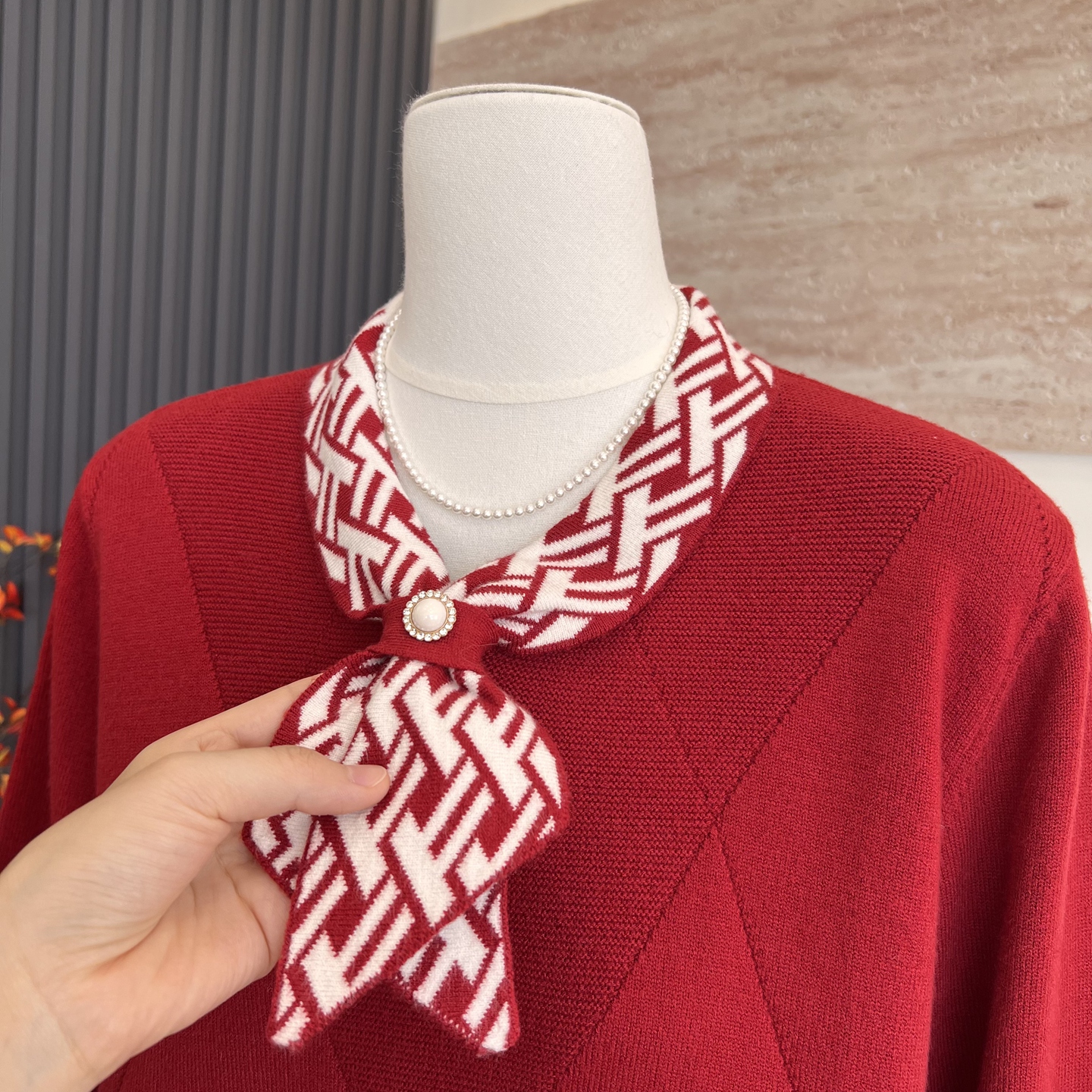 新款妈妈装秋季针织衫上衣时尚气质围巾领小衫中年女百搭套头毛衣