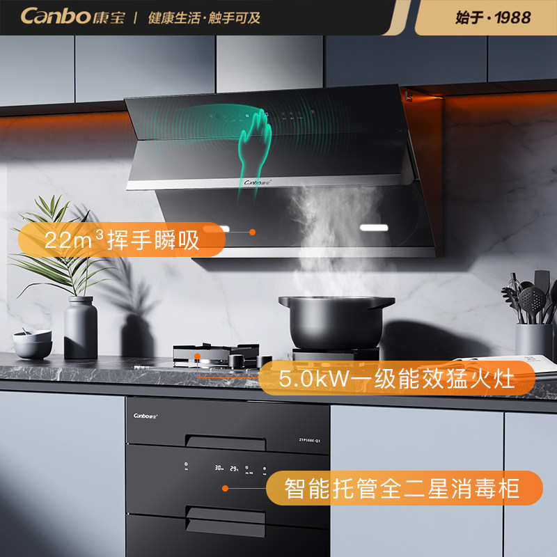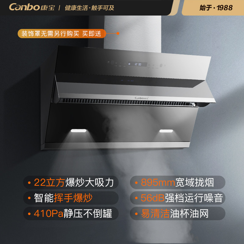 康宝CXW-318-BE229油烟机侧吸式大吸力挥手智控自清洗负离子净味
