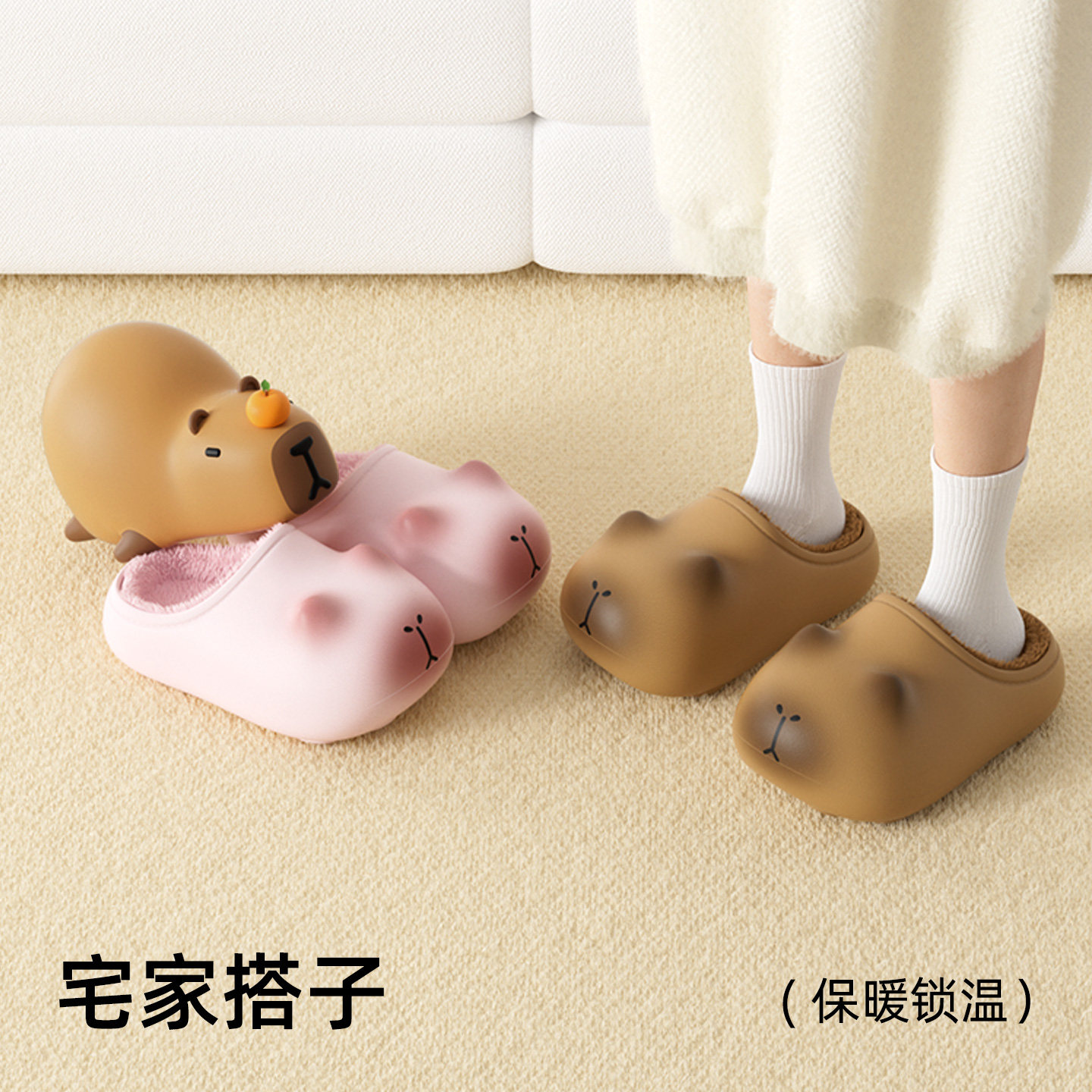 chedoir卡皮巴拉防水棉拖鞋女款冬季亲子居家防滑耐脏半包跟棉拖