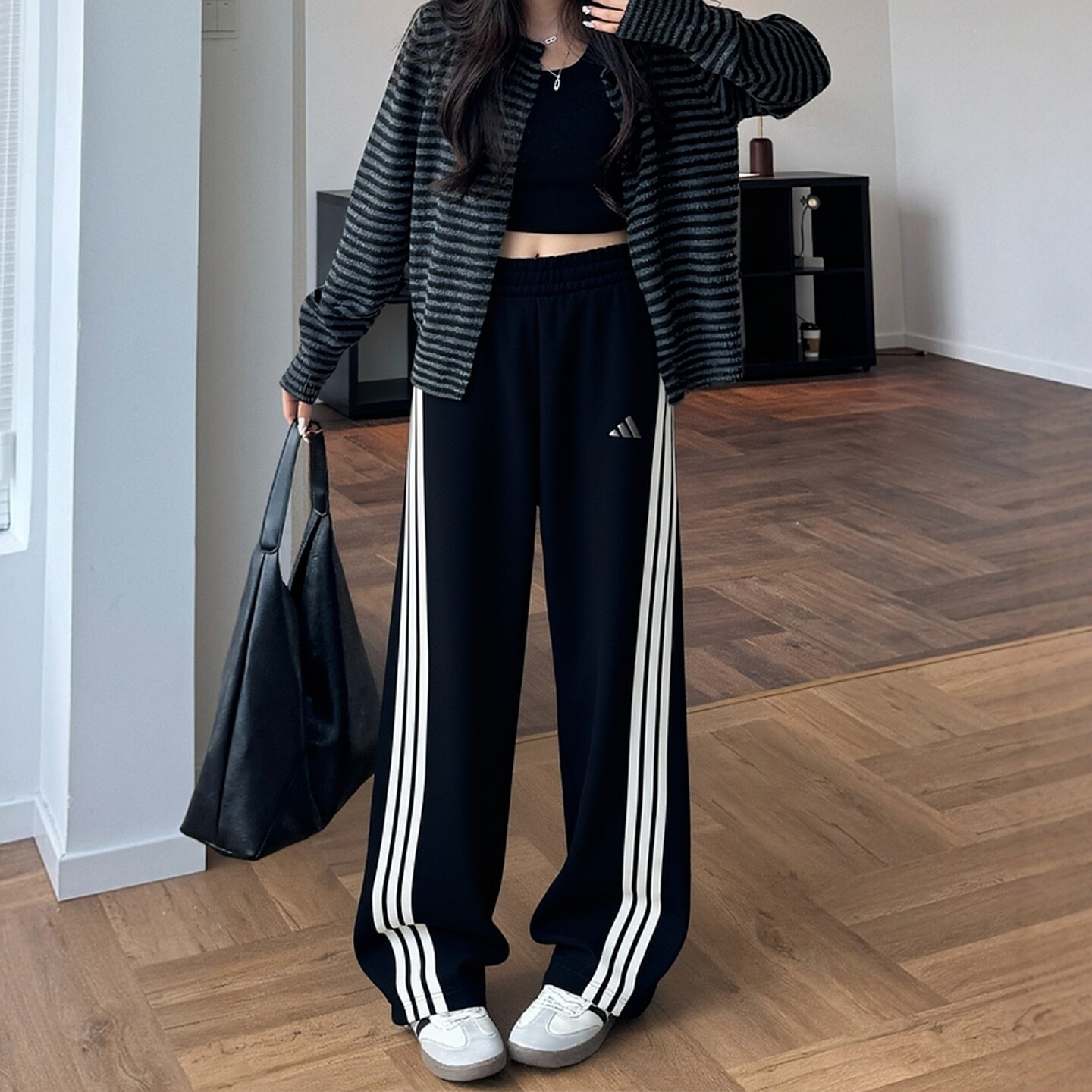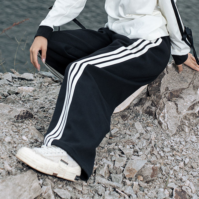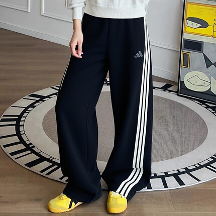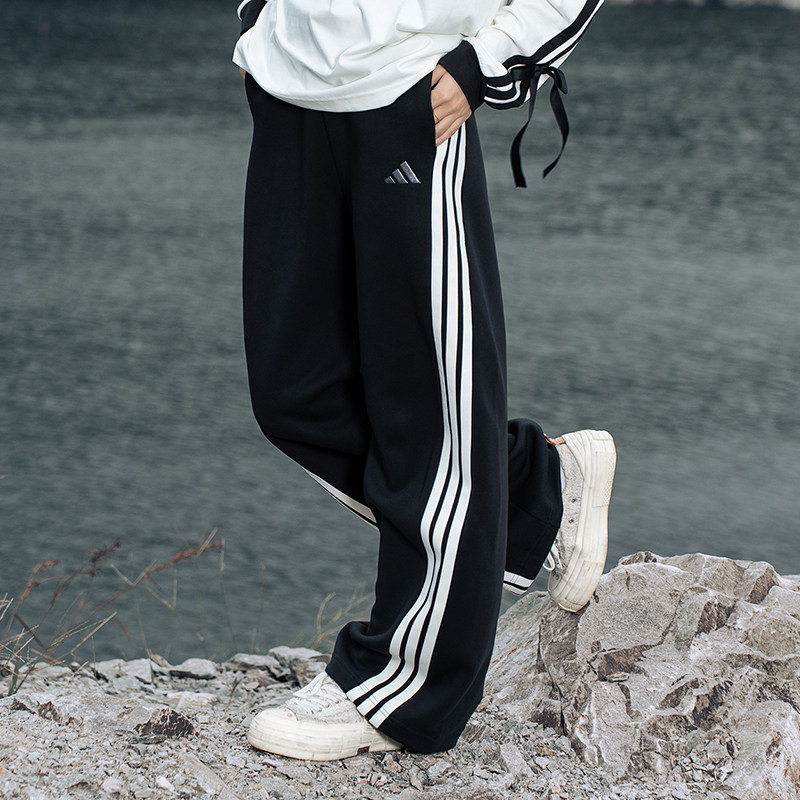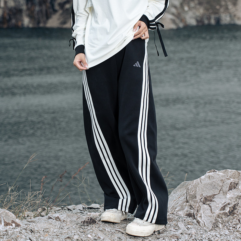 阿迪达斯弯刀裤女冬季新款宽松阔腿香蕉裤美式复古三条杠运动裤