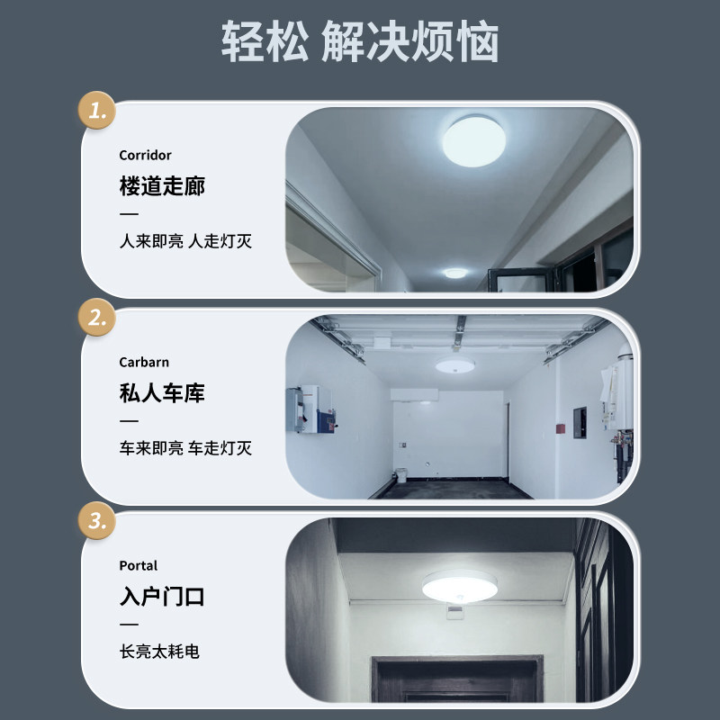 led感应吸顶灯声控楼道楼梯过道家用入户走廊自动雷达人体感应灯