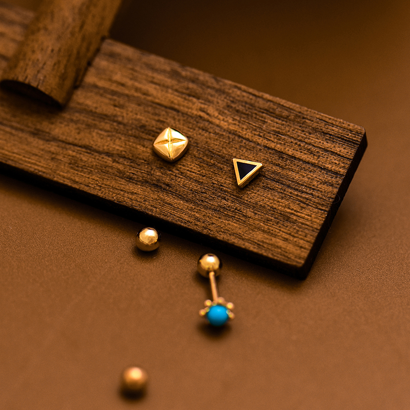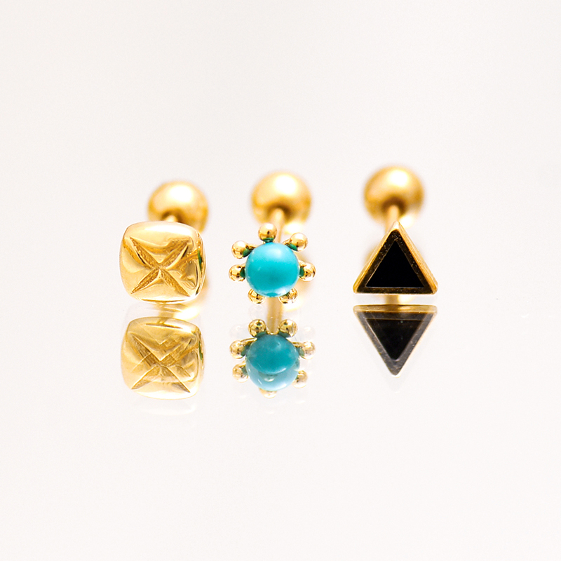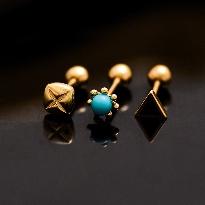 韩国时尚10K黄金耳钉女 三角形螺纹螺丝耳饰通体K金养耳洞单只
