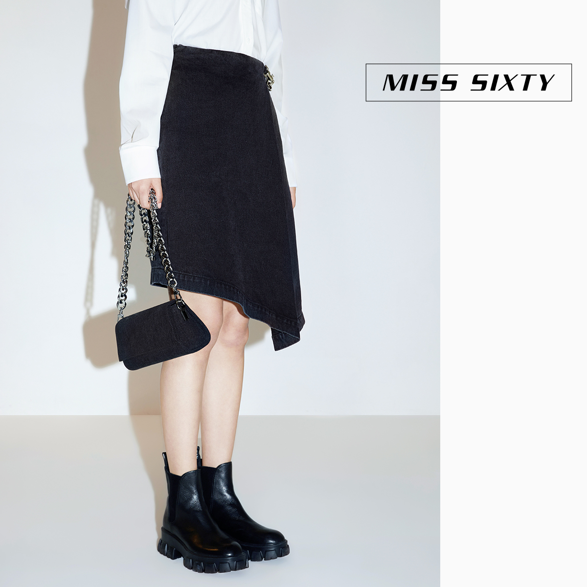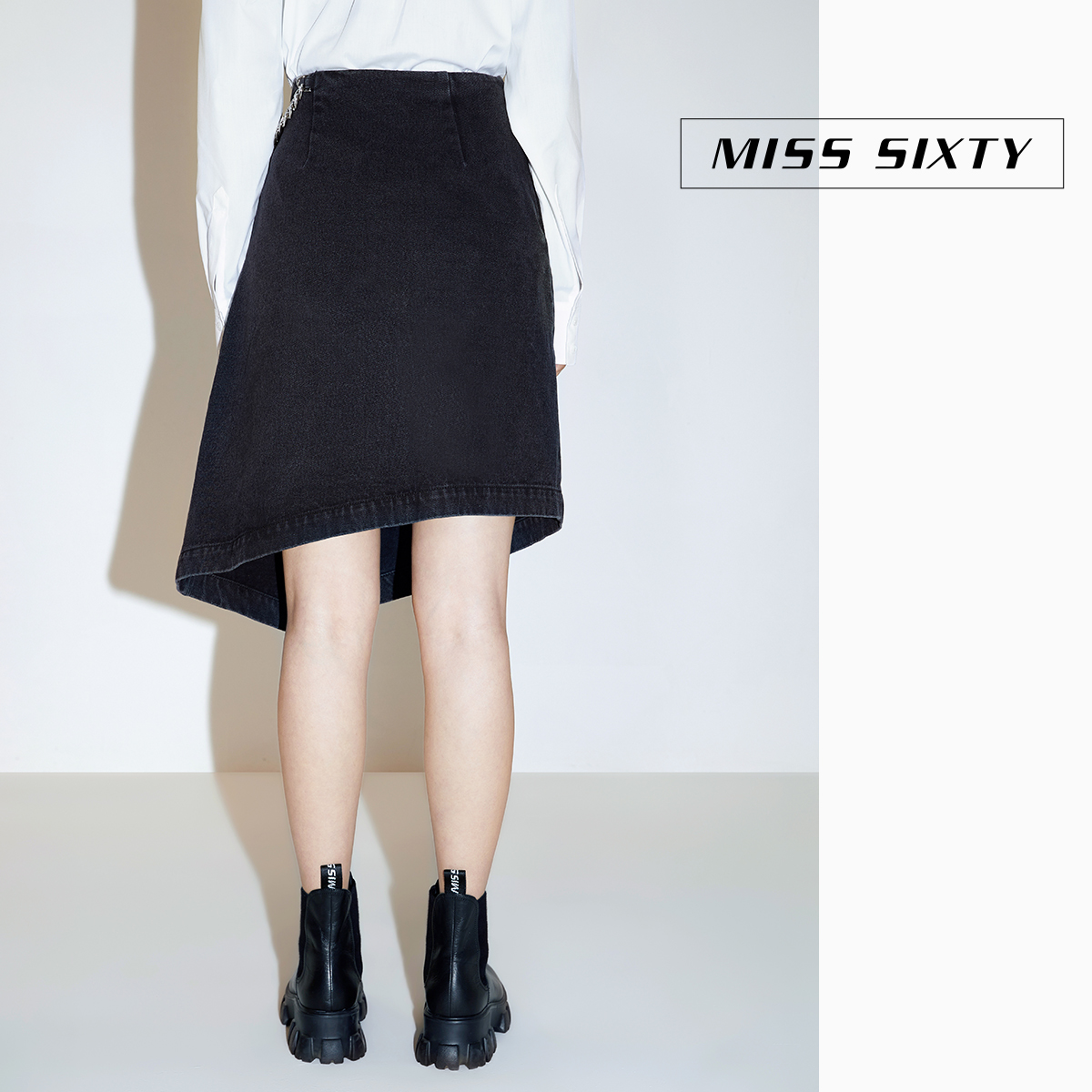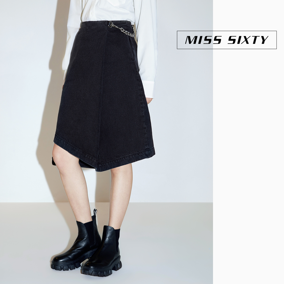 Miss Sixty冬季链条不规则中长牛仔半身裙女