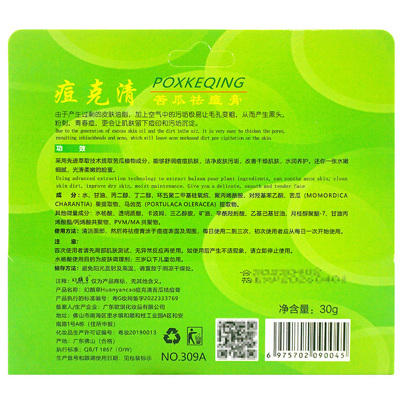 正品2送1】幻颜草痘克清苦瓜祛痘膏30g水润养护舒润学生痘痘肌