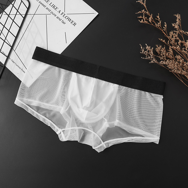男士冰丝网纱内裤低腰性感超薄透明纯欲平角裤男U凸透气无痕四角