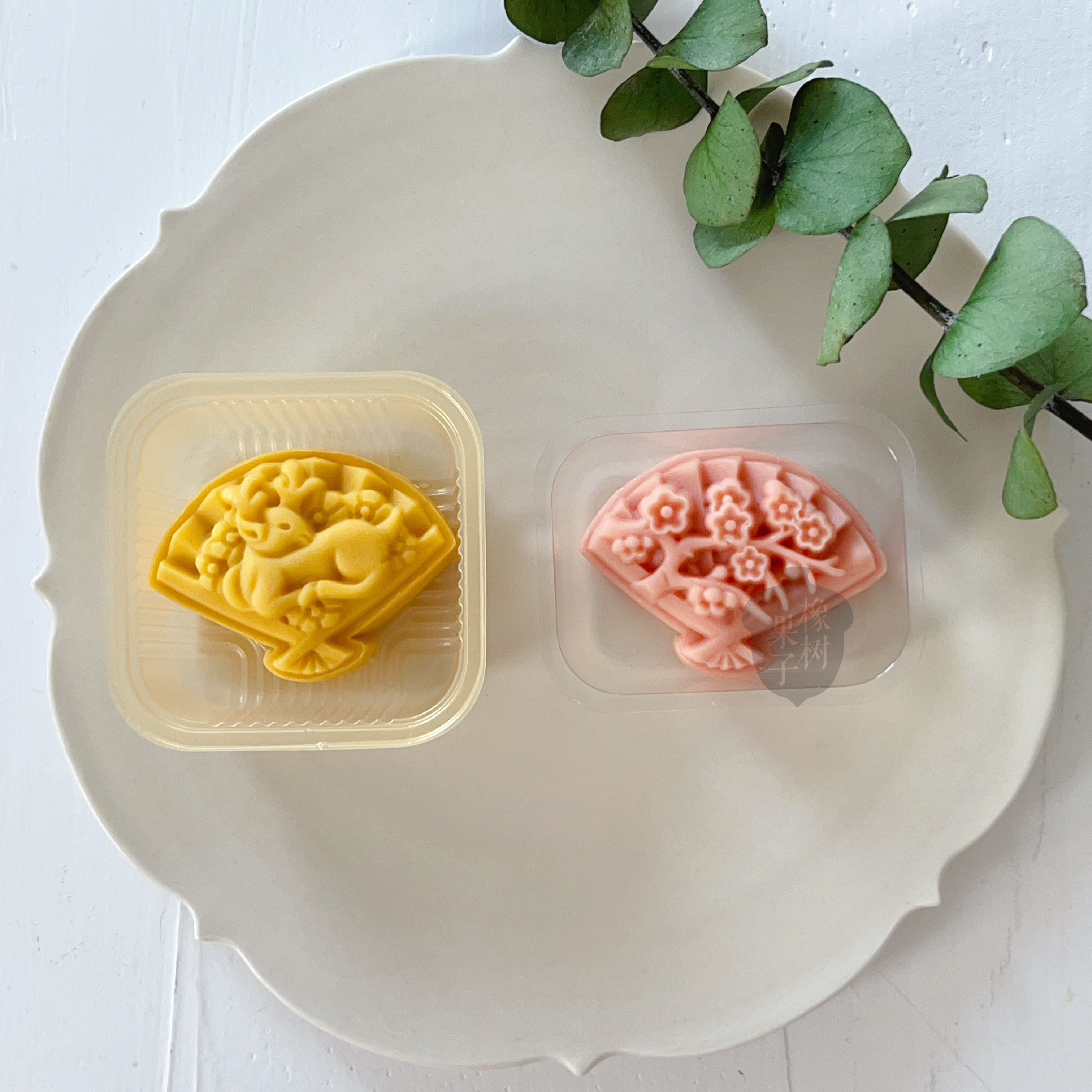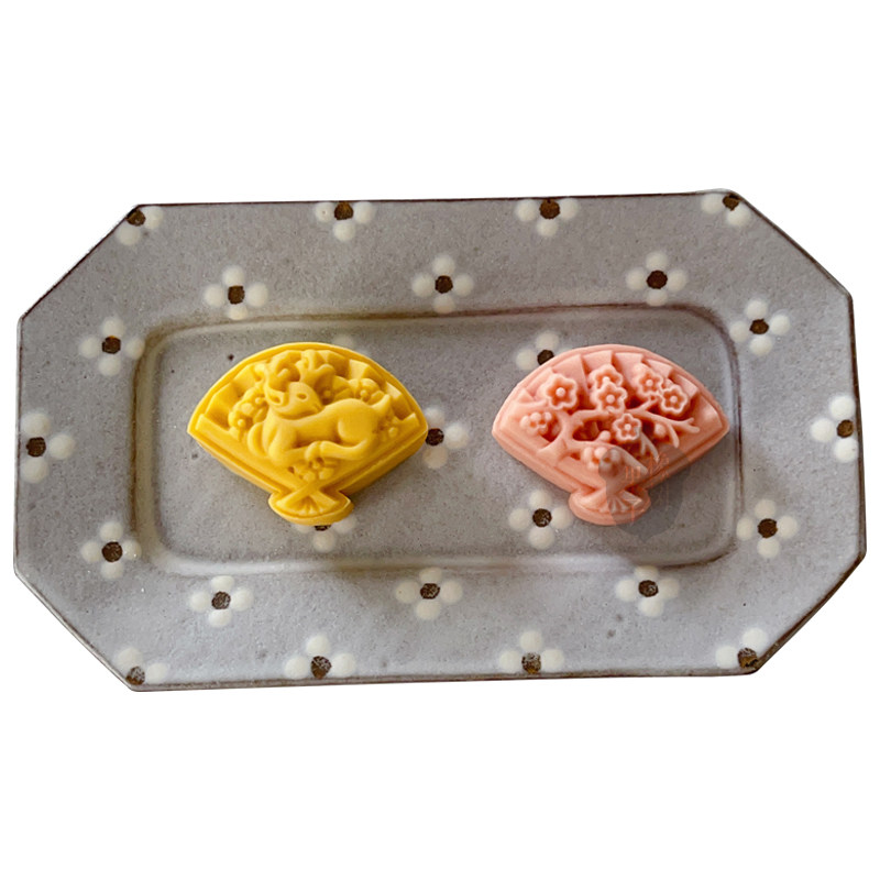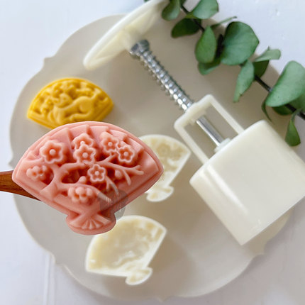 50g中式立体扇子绿豆糕模具中秋国潮梅花鹿月饼模扇型山药糕压模