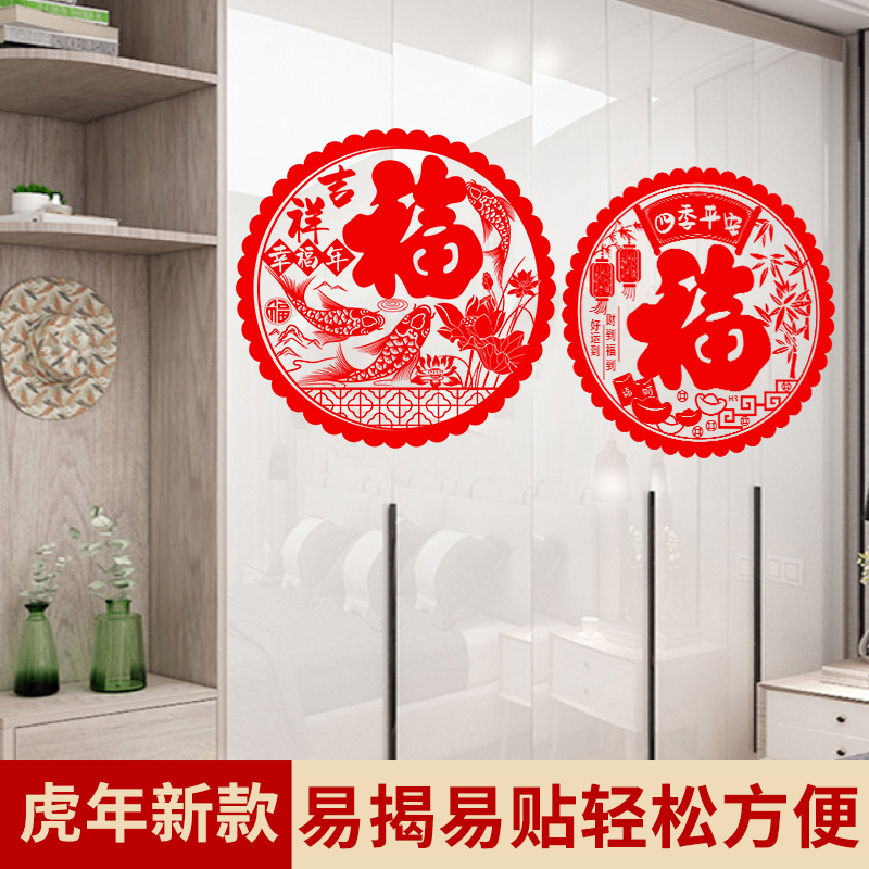 2023福字门贴剪纸窗花静电贴玻璃贴纸客厅春节过年新年装饰布置