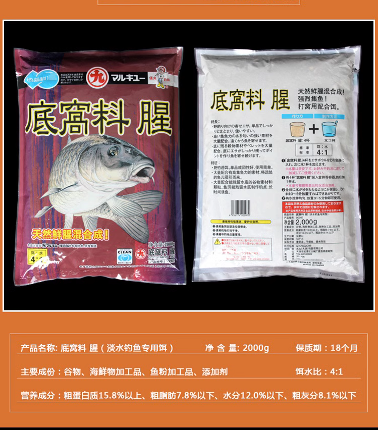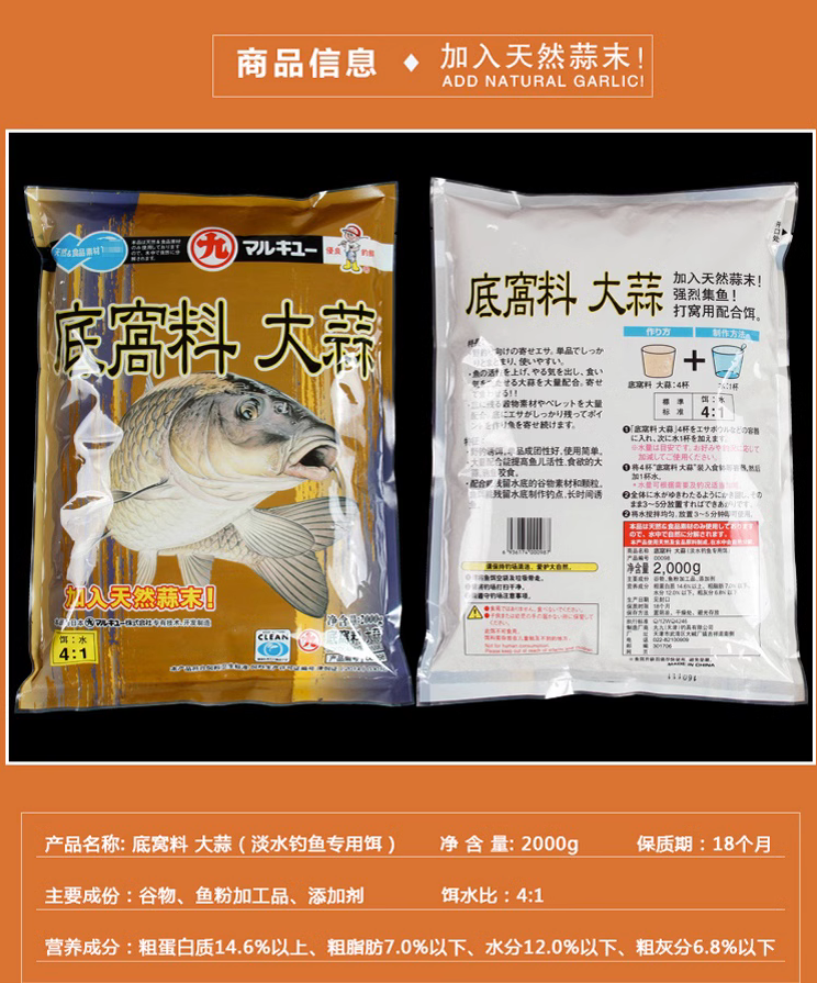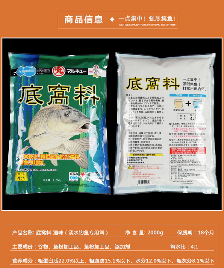 丸九底窝料2000g酒香大蒜腥味打窝料鲫鲤草鱼饵料钓饵湖库野钓竞