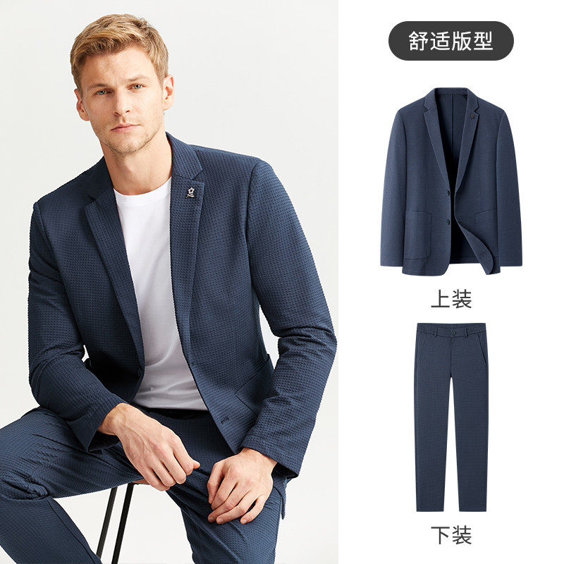 [肌理泡泡纱/弹力无束缚]梦特娇秋季男休闲套装单西服休闲裤提花J