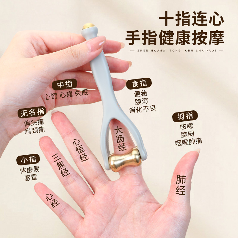 丰林黄铜手指按摩器手指关节疏通经络按摩神器手指按摩滚轮点穴棒