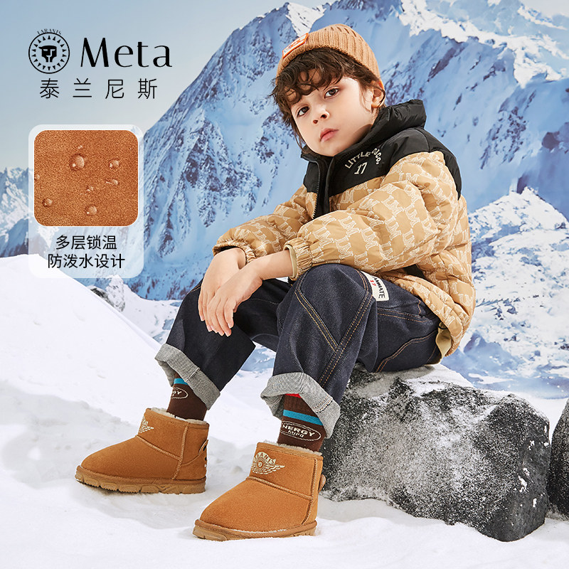 泰兰尼斯meta儿童雪地靴男童加绒加厚保暖棉鞋冬季女童抗寒靴子