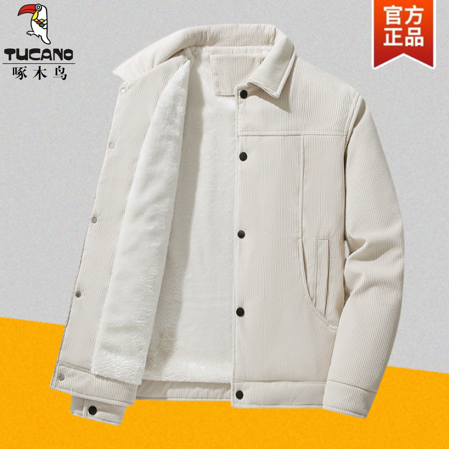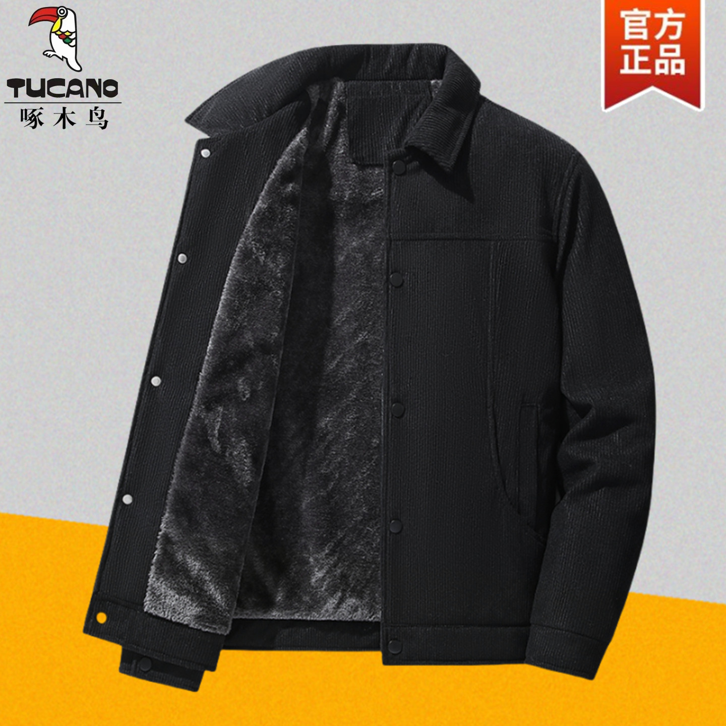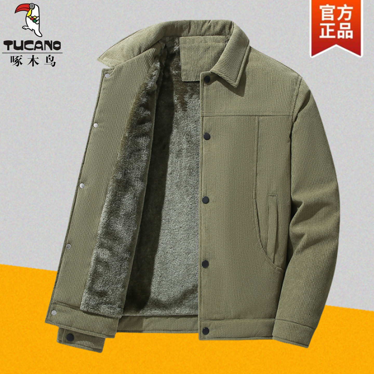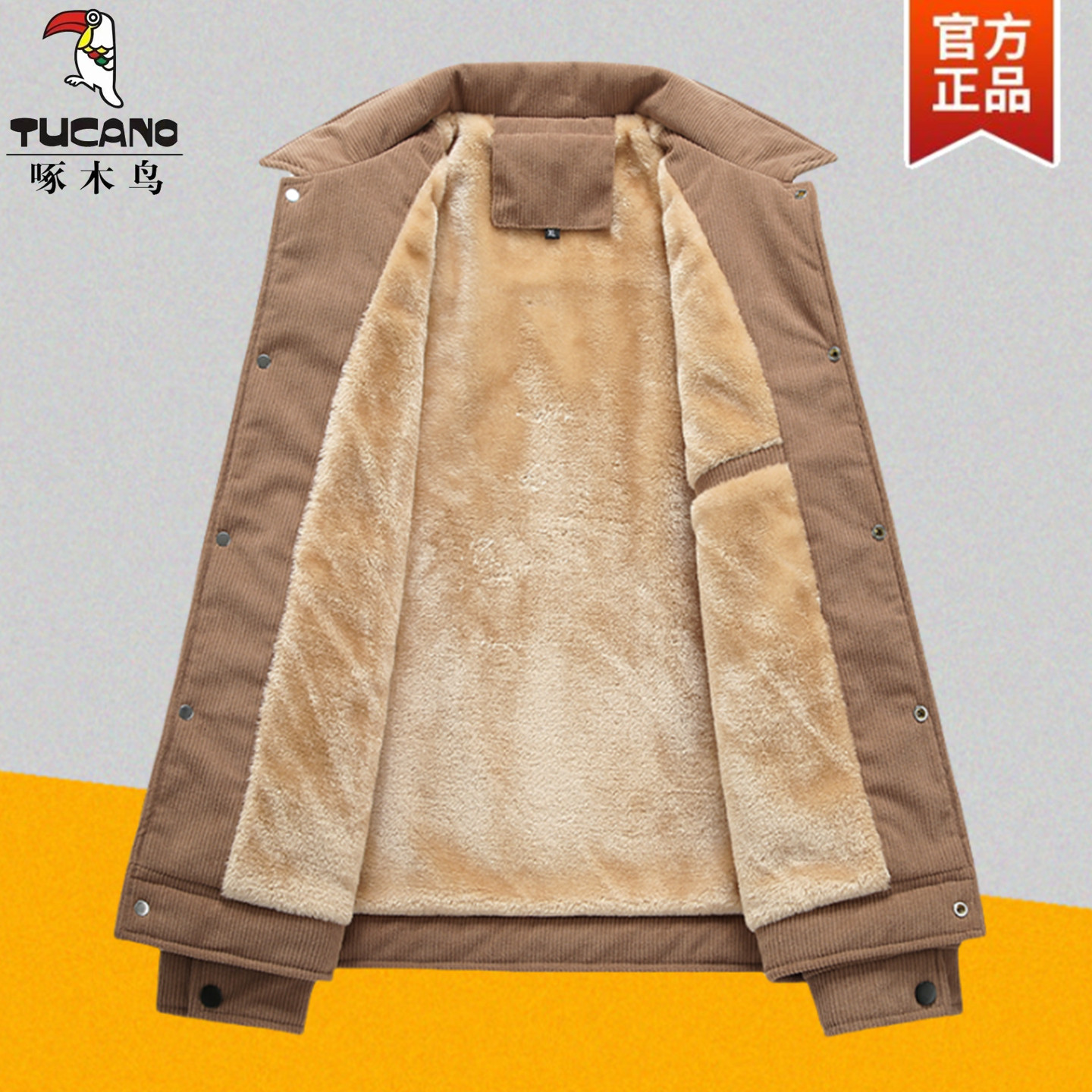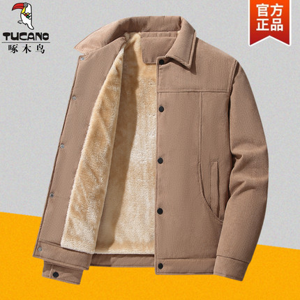 啄木鸟秋冬季灯芯绒外套男夹克宽松中老年加绒加厚棉袄羊羔绒棉衣