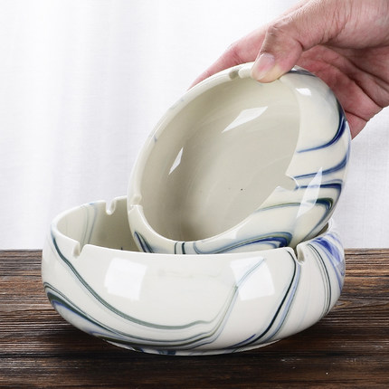 大号陶瓷烟灰缸蓝纹创意轻奢烟缸家用客厅中式办公室酒店高级灰缸