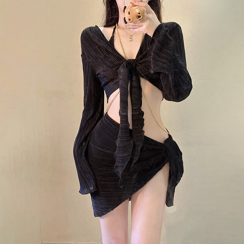 ins纯欲风性感链条辣妹比基尼三件套 欧美三点式泡温泉泳衣女度假