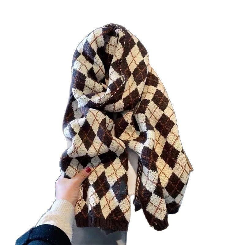 日系菱形格子围巾女冬季韩版百搭学生秋冬加厚保暖毛线针织围脖男