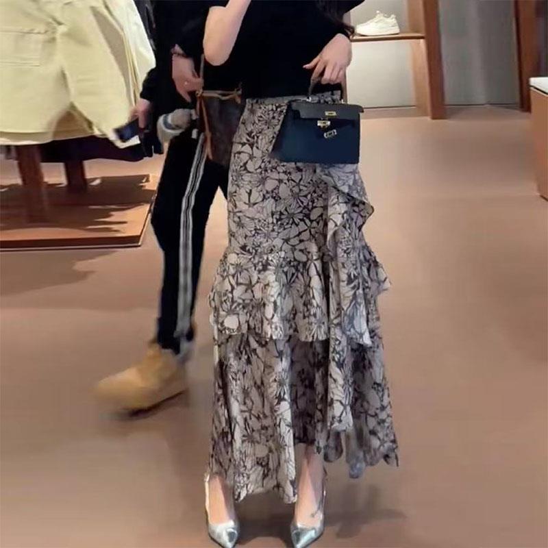 不规则荷叶边半身裙女2025年夏季新款小众设计感时尚印花a字裙子