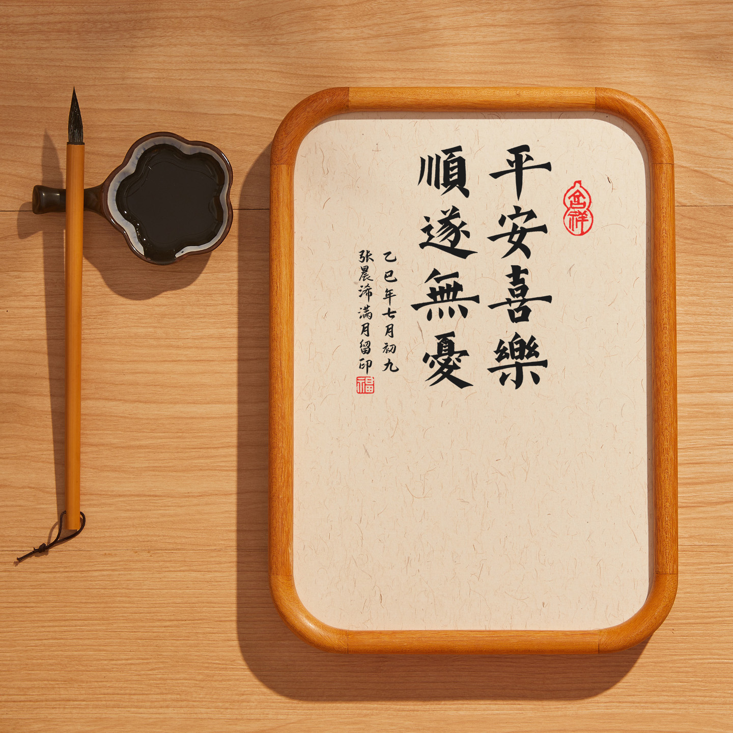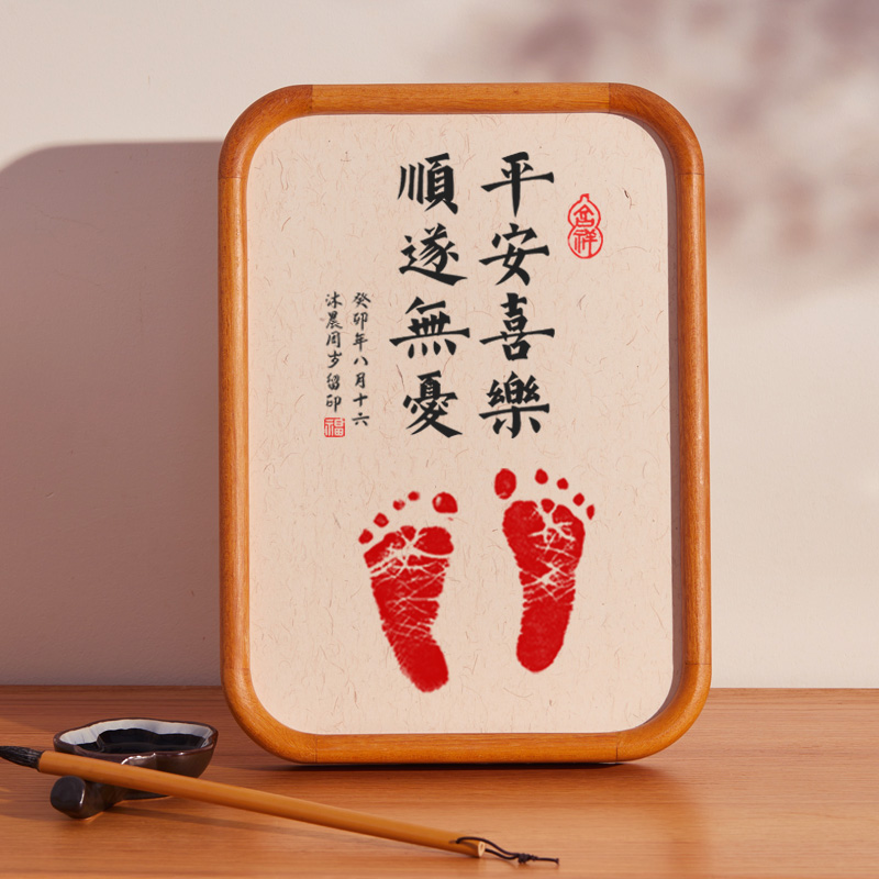 宝宝足印相框周岁手足印手写书法中国风实木百日满月手脚印婴儿印