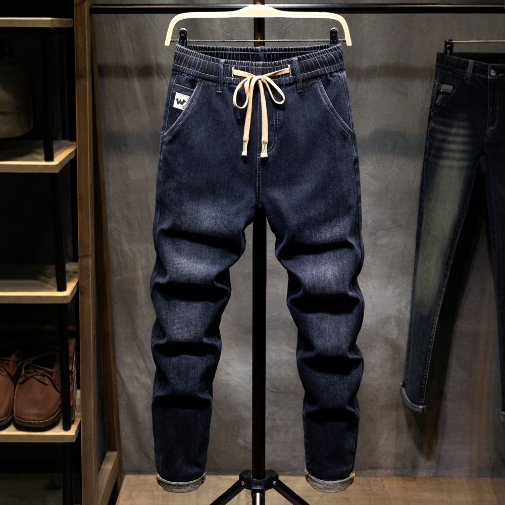 高端弹力松紧腰牛仔裤男款春秋2025新款修身小脚休闲裤男士长裤子