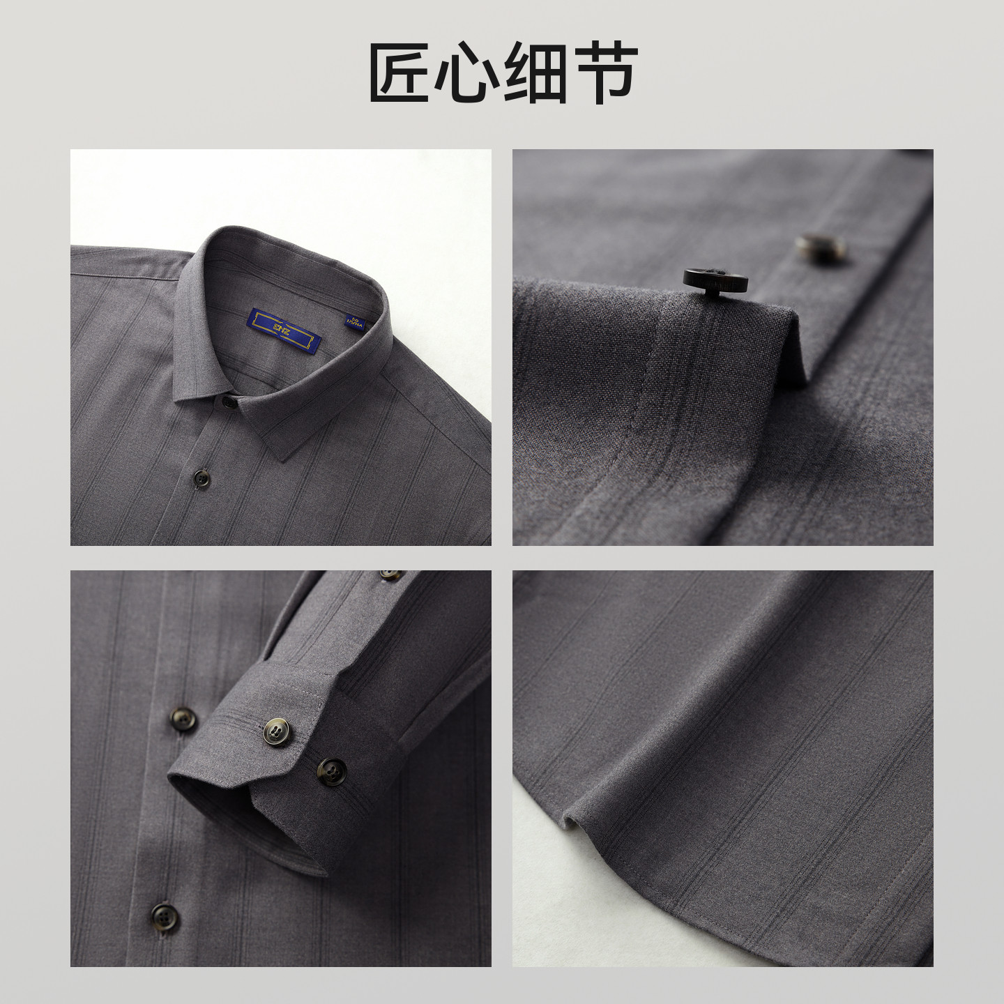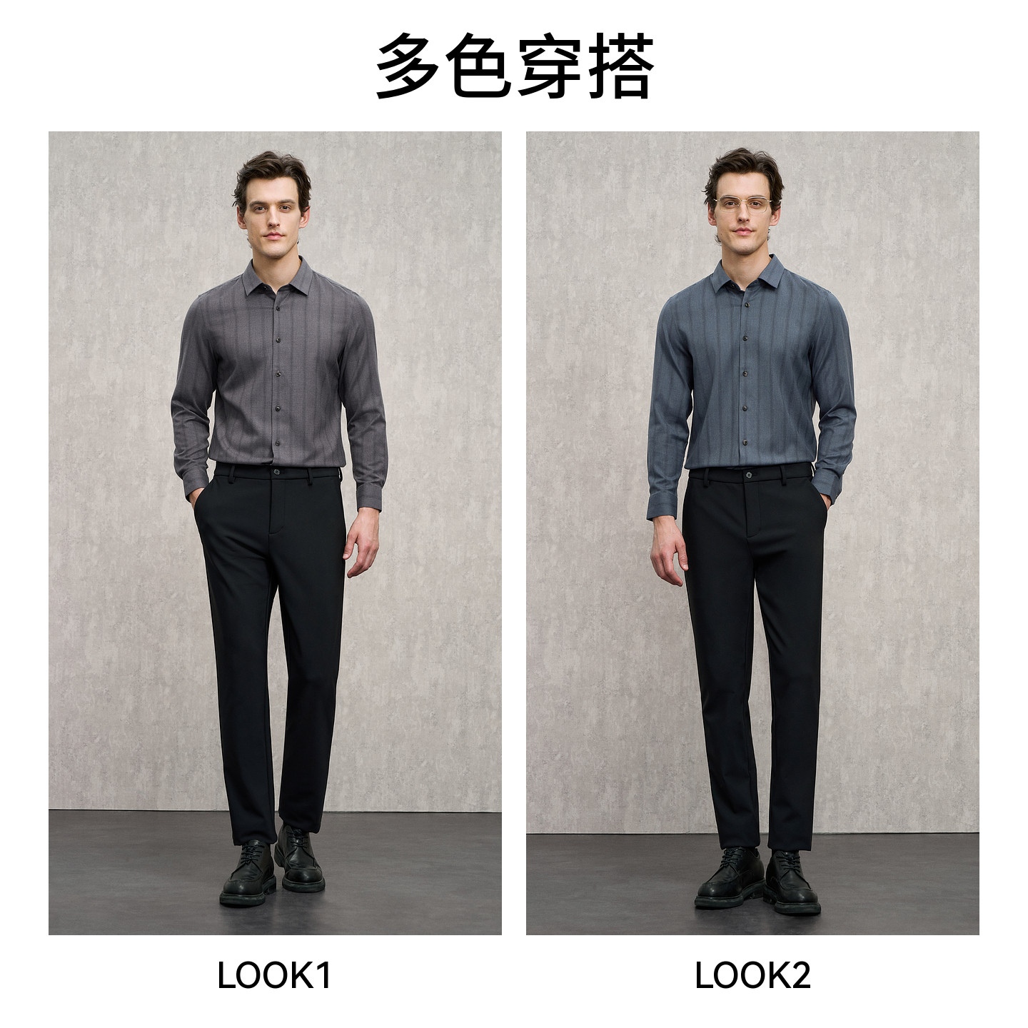EMZ鄂尔多斯25秋冬新款保暖羊毛衬衫商务休闲条纹时尚长袖上衣男