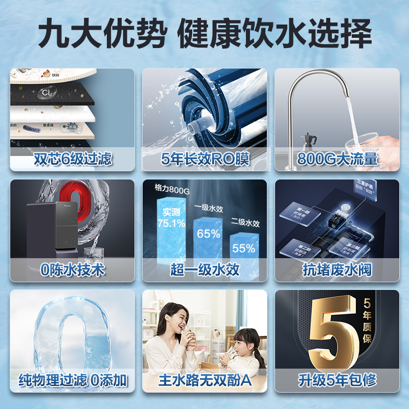 【政府补贴】格力净水器家用直饮厨下过滤器ro反渗透净水机大流量