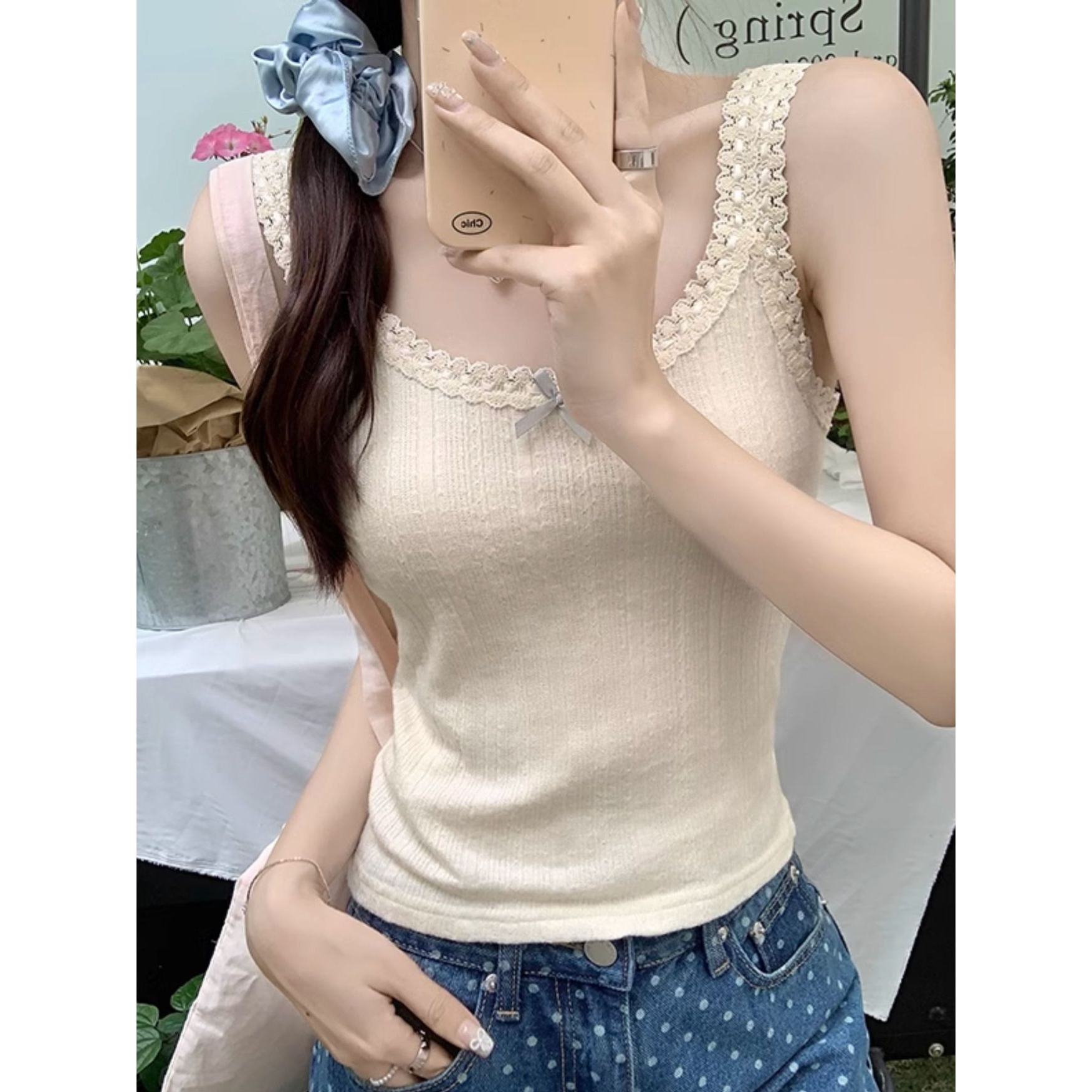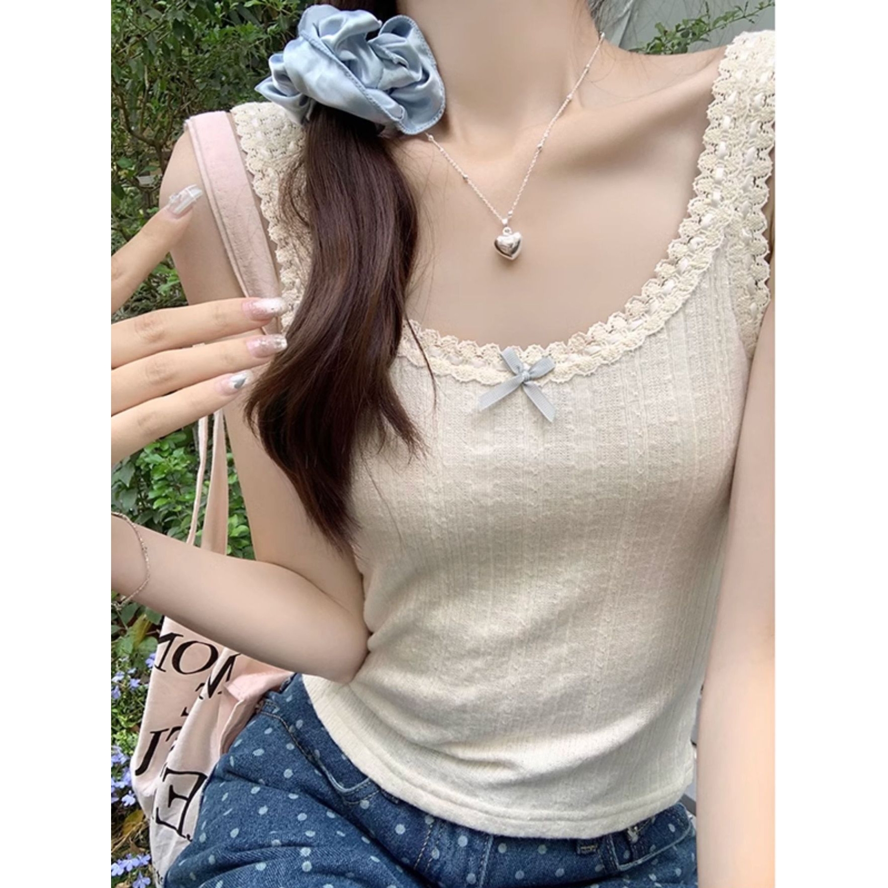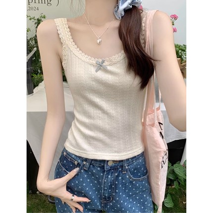 美式设计感小众蝴蝶结蕾丝花边bm吊带背心女夏季外穿修身内搭上衣