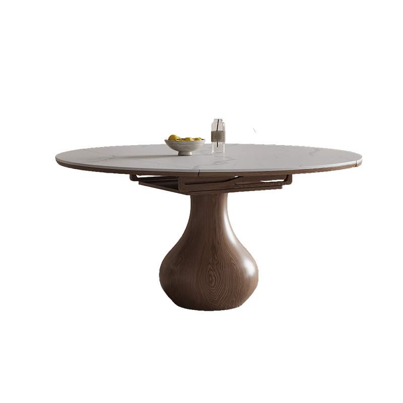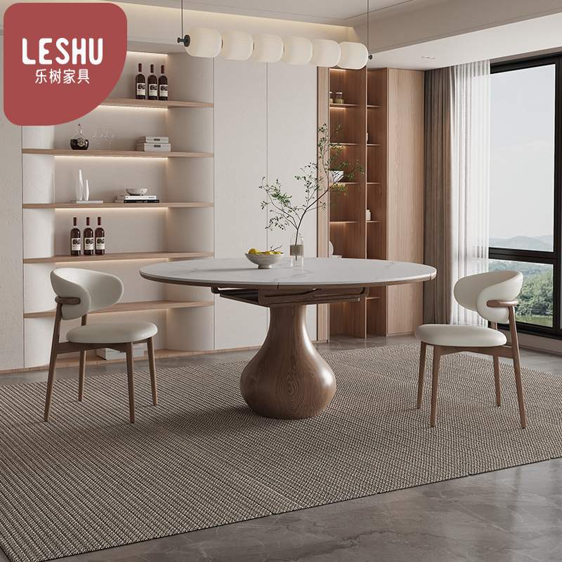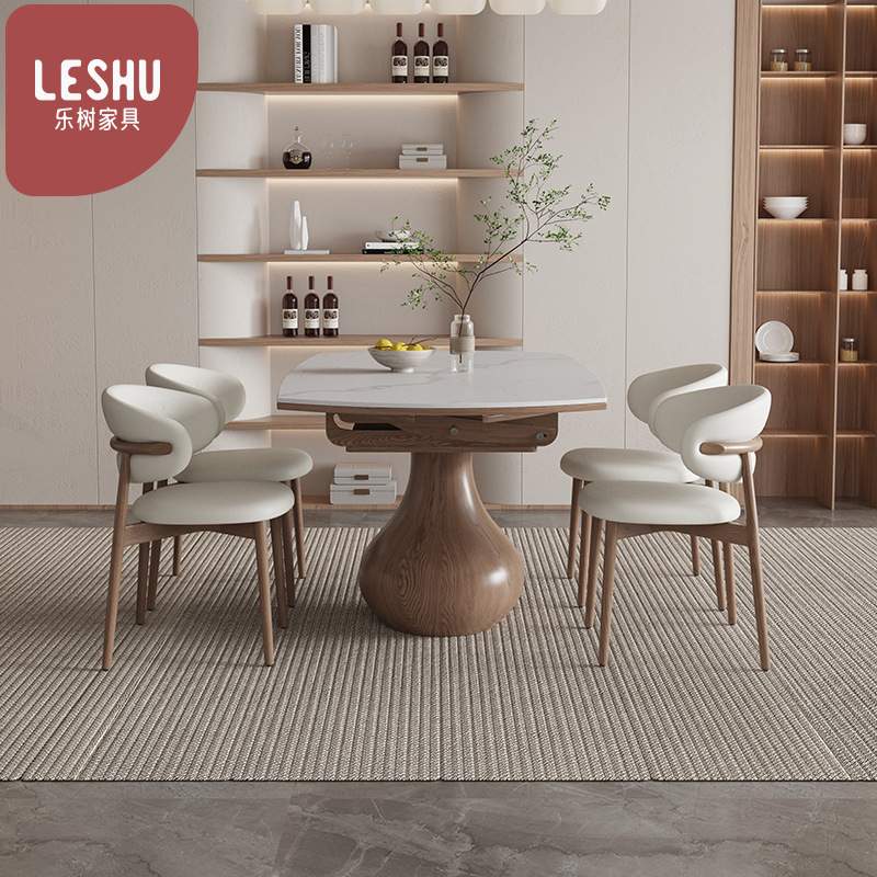 法式实木岩板古风餐桌椅组合现代简约家用小户型折叠方变圆拉伸桌