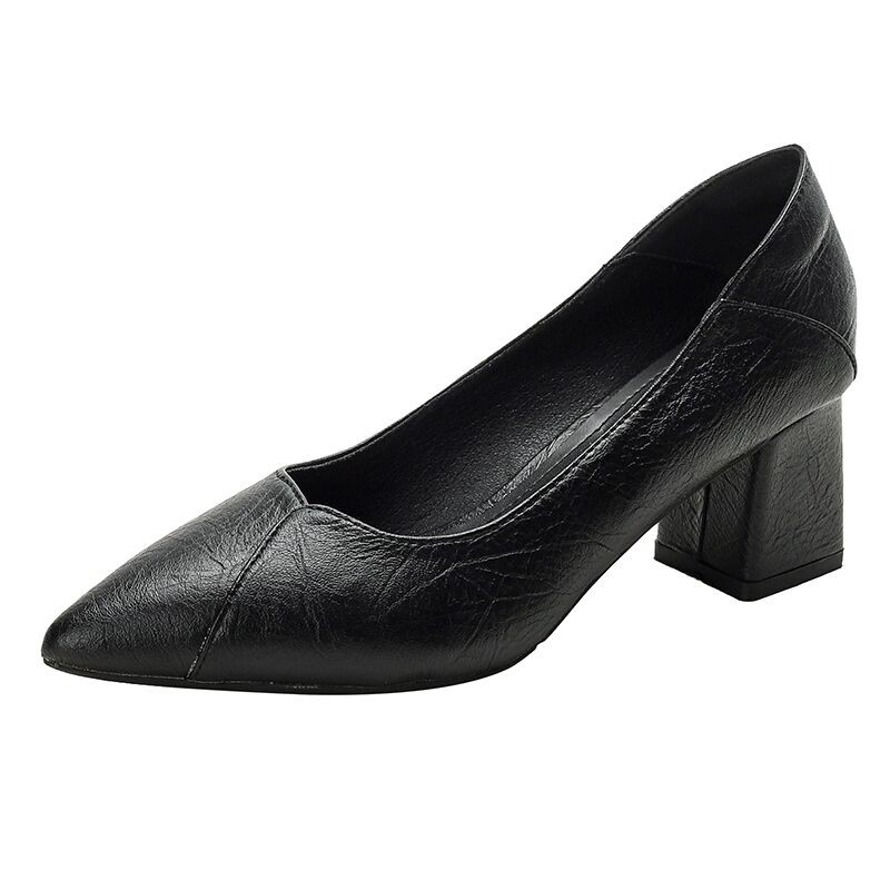 空姐工作鞋女黑色皮鞋粗跟上班久站不累脚软底舒适职业面试高跟鞋
