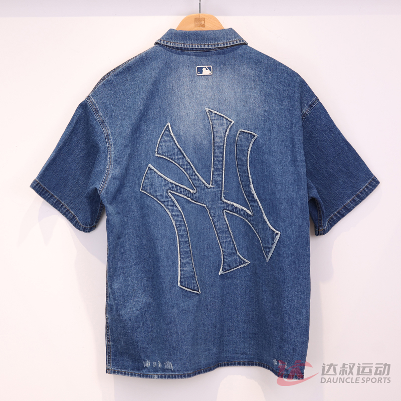 特价25新款MLB外套男女NY复古大标牛仔短袖衬衫运动夹克3ADRB0253
