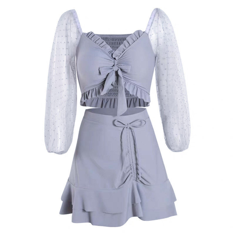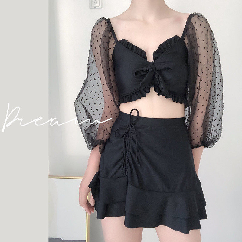 2025新款泳衣女仙女范温泉保守三件套分体式保守遮肚显瘦裙式泳装