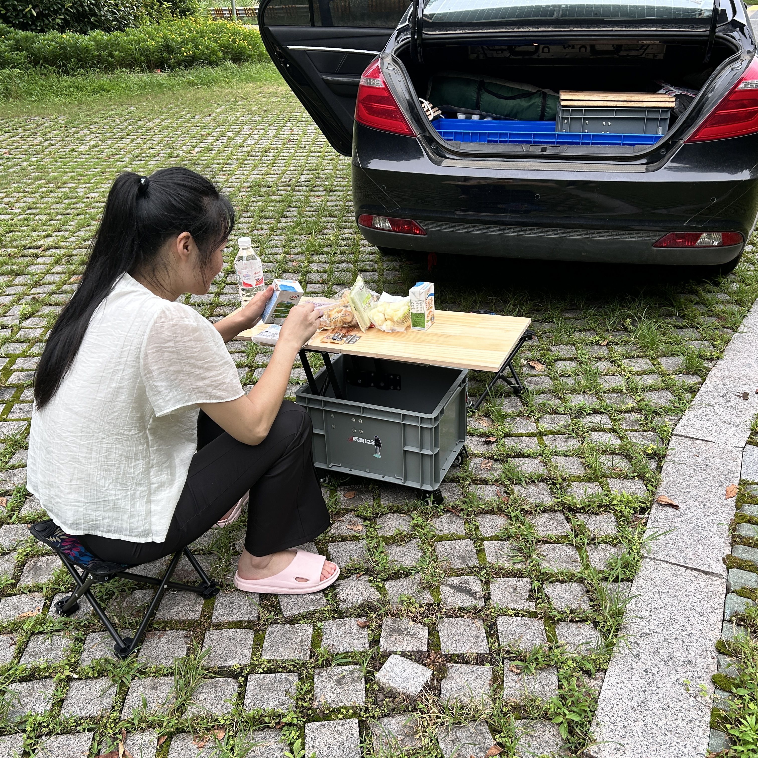 户外露营折叠桌便携式野餐桌车载自驾游装备桌子野营储物整理箱子