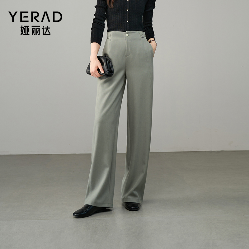 娅丽达亚麻拖地阔腿裤女春季休闲裤2025新款直筒裤子黑色显瘦西裤