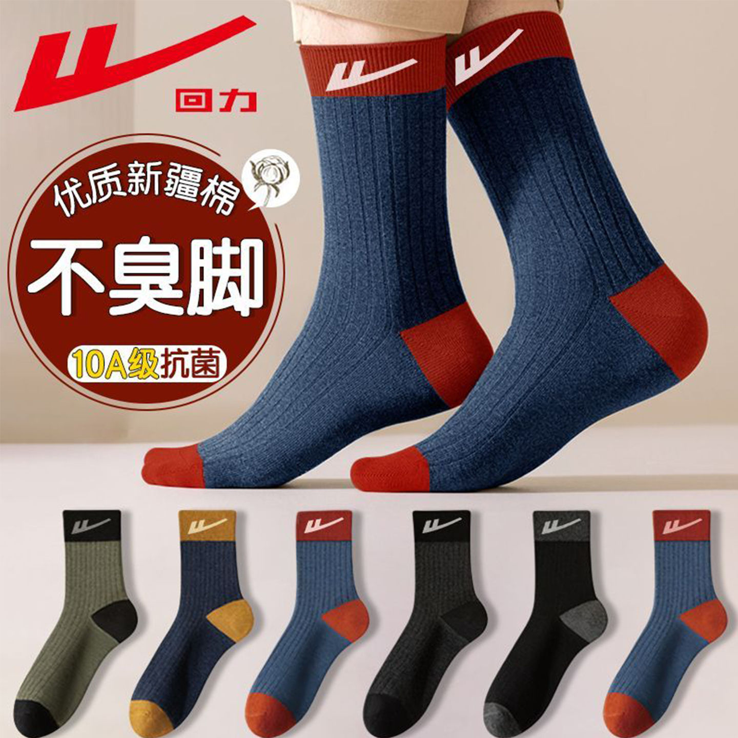 回力100%正品新疆棉袜子男款春秋冬中筒袜防臭吸汗运动袜男士长袜