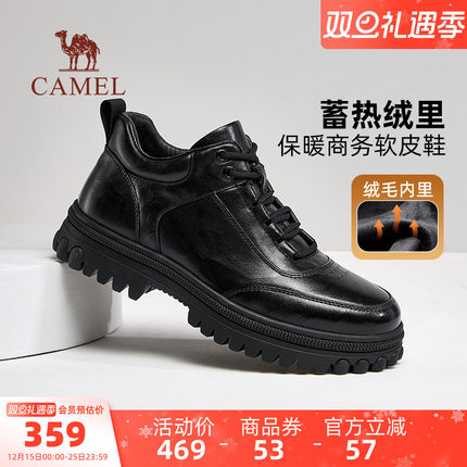 骆驼男鞋2025冬季新款加绒保暖高帮休闲皮鞋舒适柔软商务皮鞋男士