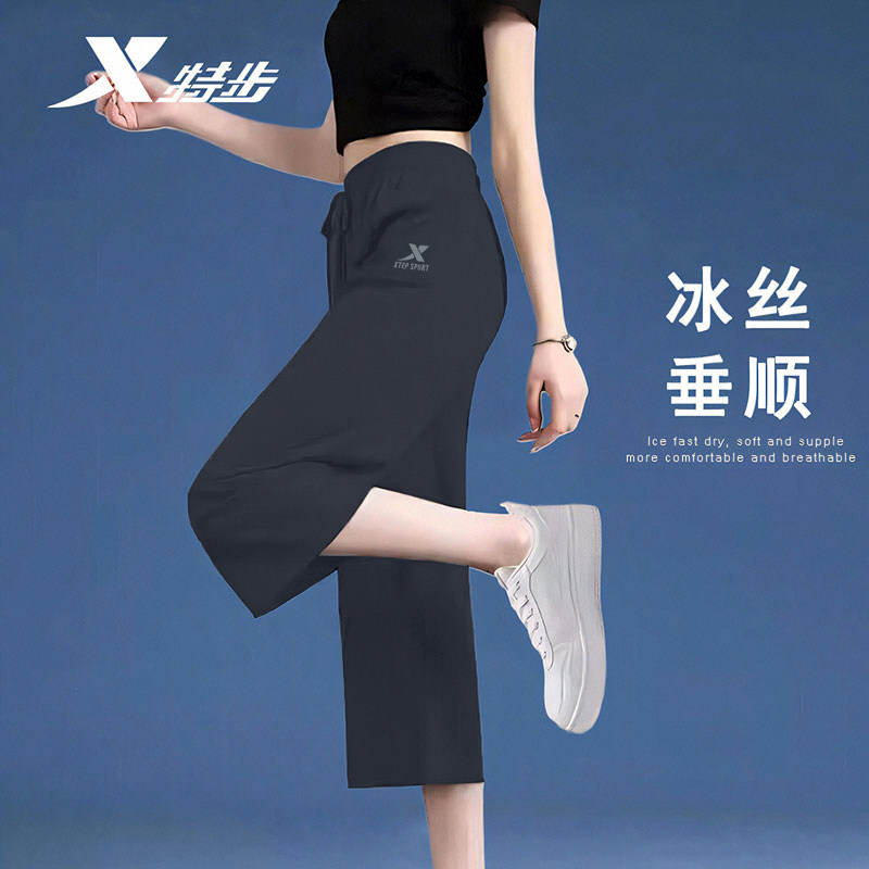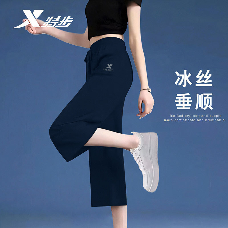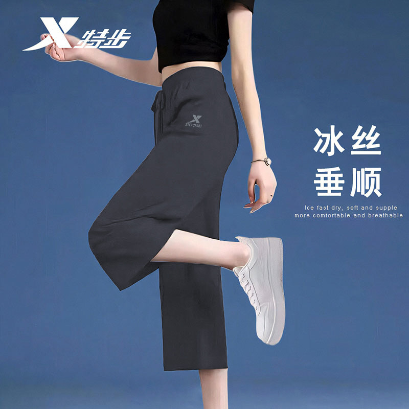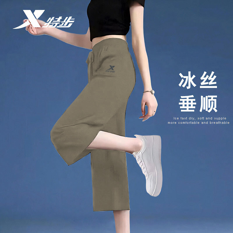 特步七分裤女夏季冰丝直筒裤大码宽松透气速干裤子正品休闲运动裤