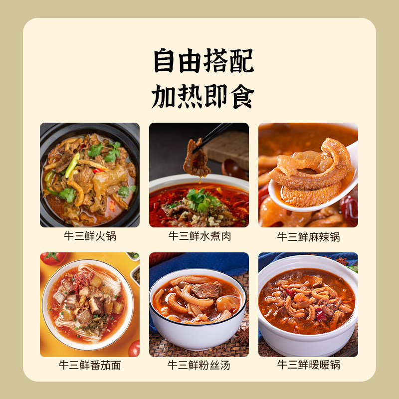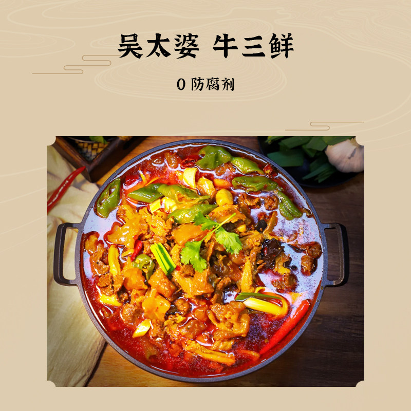 吴太婆牛三鲜火锅牛肉牛肚牛蹄筋牛杂煲加热即食预制菜湖北特产