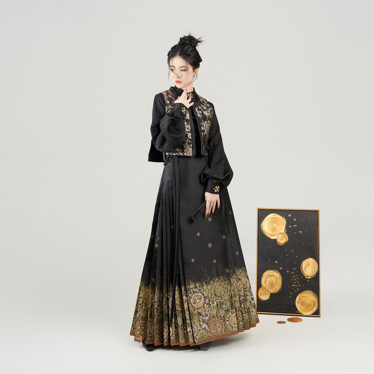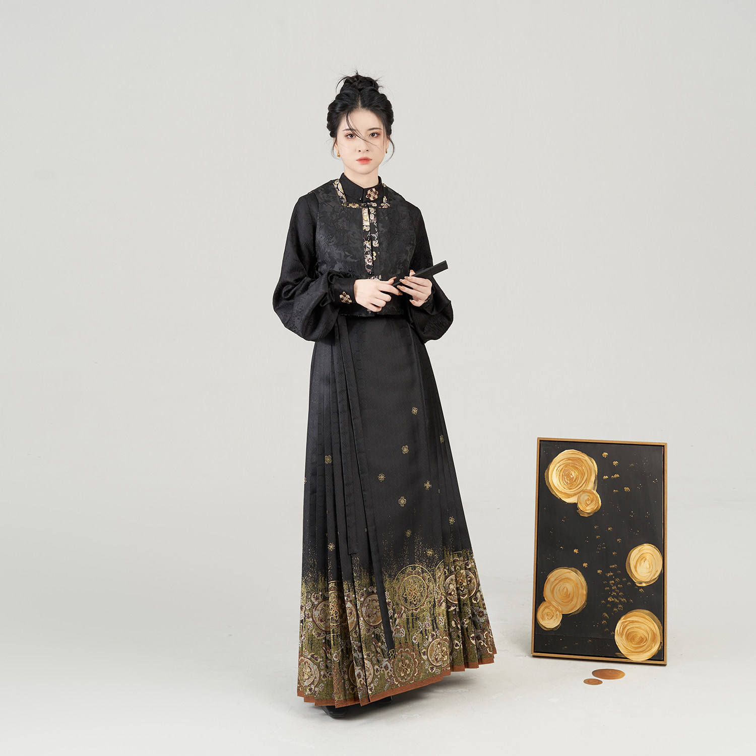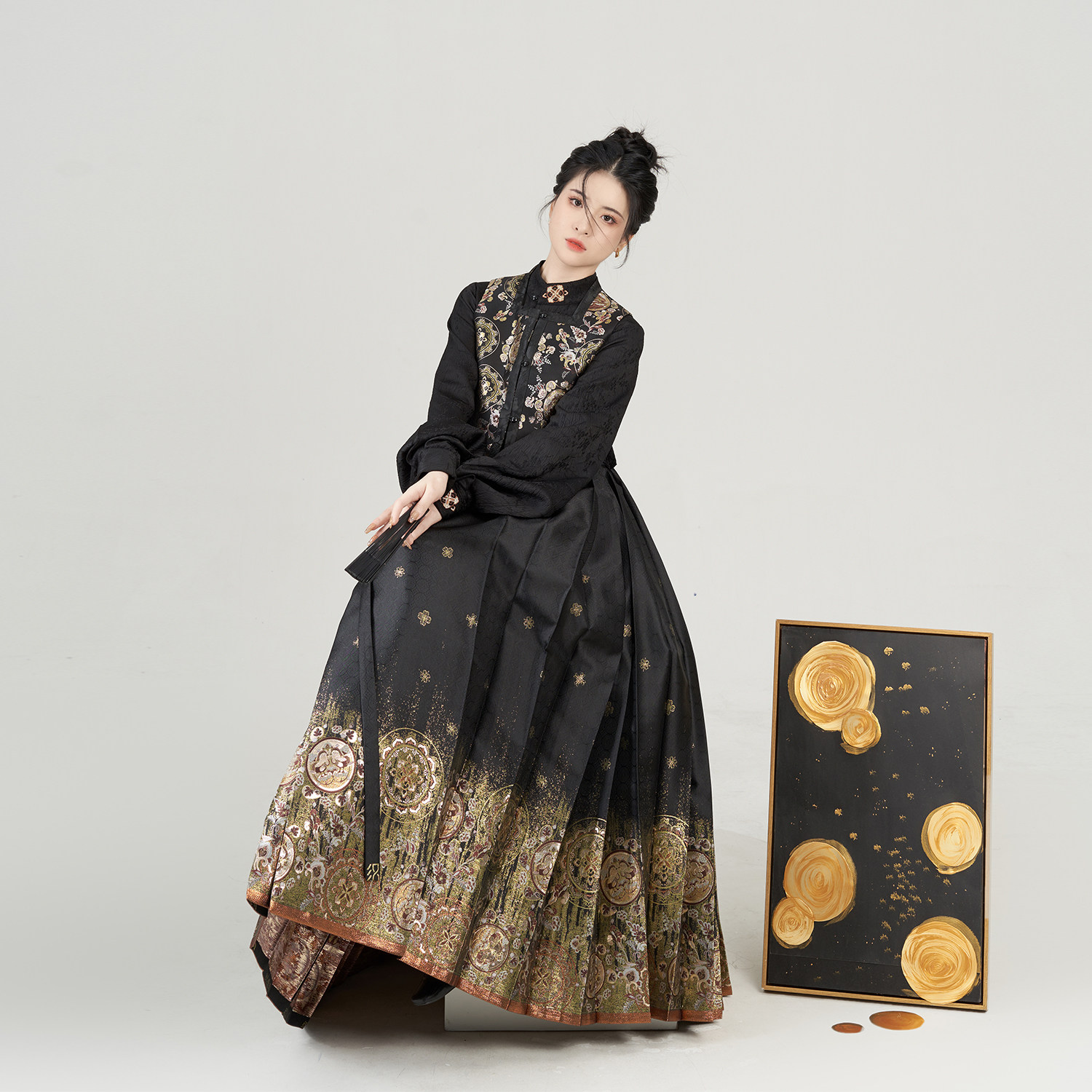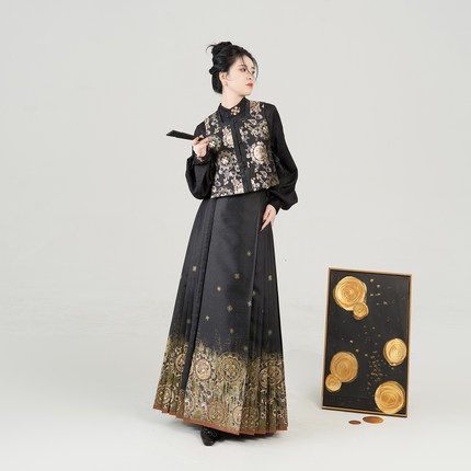 金花玉镜织造司明制汉服改良方领比甲立领衬衫仿妆花织金马面裙女