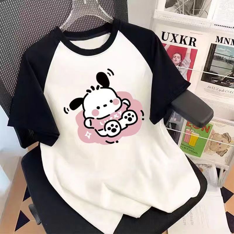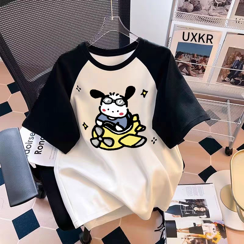 中大童短袖t恤女童宽松纯棉2024夏季新款插肩袖撞色打底衫上衣